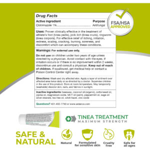 O tratamento Terrasil Tinea contém 1% de clotrimazol e ingredientes naturais para tratar infecções fúngicas por tinea. Eficaz para Tinea versicolor, Tinea corporis, Tinea cruris e Tinea pedis. Para todos os tipos de pele, no corpo, pescoço, virilha, pernas e pés. Livre de odores. Terrasil Tinea O tratamento com clotrimazol 1% cura a maioria das infecções por tinea. Acalma e alivia a coceira, queimação, dor, vermelhidão, inflamação, descoloração da pele e irritação. Acelera a cicatrização da pele escamosa rachada. NATURAL E SEGURO: O tratamento Terrasil Tinea para fungos cutâneos oferece benefícios terapêuticos adicionais com ingredientes naturais para acalmar e aliviar rachaduras, descamação e danos na pele. O Terrasil usa ingredientes totalmente naturais e é livre de parabenos, álcoois, corantes, fragrâncias e esteróides. Formulado até mesmo para a pele mais sensível. O Terrasil é formulado com os melhores ingredientes e fabricado nos EUA com os mais altos padrões de fabricação. – PODEROSO CREME ANTIFÚNGICO TINEA: contém 1% de clotrimazol e ingredientes naturais para tratar infecções fúngicas por Tinea. Eficaz para Tinea versicolor, Tinea corporis, Tinea cruris e Tinea pedis. Para todos os tipos de pele, no corpo, pescoço, virilha, pernas e pés. Livre de odor. – EFICÁCIA CLINICAMENTE COMPROVADA: O tratamento com Terrasil Tinea com clotrimazol 1% cura a maioria das infecções por tinea. Acalma e alivia a coceira, queimação, dor, vermelhidão, inflamação, descoloração da pele e irritação. Acelera a cicatrização da pele escamosa rachada. – TECNOLOGIA PATENTEADA EXCLUSIVA: Somente o tratamento Terrasil Tinea contém minerais ativados, apoiados por mais de 20 anos de pesquisa e desenvolvimento, que, juntamente com ingredientes selecionados, tratam, protegem e apoiam a cicatrização da pele com eficácia. – NATURAL E SEGURO: O tratamento Terrasil Tinea para fungos cutâneos oferece benefícios terapêuticos adicionais com ingredientes naturais, incluindo cera de abelha, óleo de hortelã, óleo de semente de jojoba – até a soja alivie e alivie rachaduras, descamação e danos na pele. Terrasil é livre de parabenos, álcoois, corantes, fragrâncias e esteróides. Formulado até mesmo para a pele mais sensível. – QUALIDADE EXCEPCIONAL PARA RESULTADOS PODEROSOS: O Terrasil é formulado com os melhores ingredientes e fabricado nos EUA de acordo com os mais altos padrões de fabricação. Aprovado pela FSA/HSA.