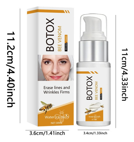 creme de 2 unidades) Creme de Botox com veneno de abelha para remoção de rugas, firmeza e hidratação, lifting e recuperação para todos os tipos de pele. Este creme anti-rugas estimula eficazmente a pele, melhora as linhas finas e restaura a suavidade, penetrando profundamente para aumentar a firmeza e restaurar a vitalidade juvenil. Sua fórmula firmadora ativa a produção de colágeno e elastina, melhorando a elasticidade e firmeza da pele para uma aparência mais jovem e tonificada. Enriquecido com ácido hialurônico, ele fornece hidratação profunda e retém a umidade, deixando a pele carnuda, macia e protegida, melhorando a função de barreira da pele e a capacidade de autorreparação.