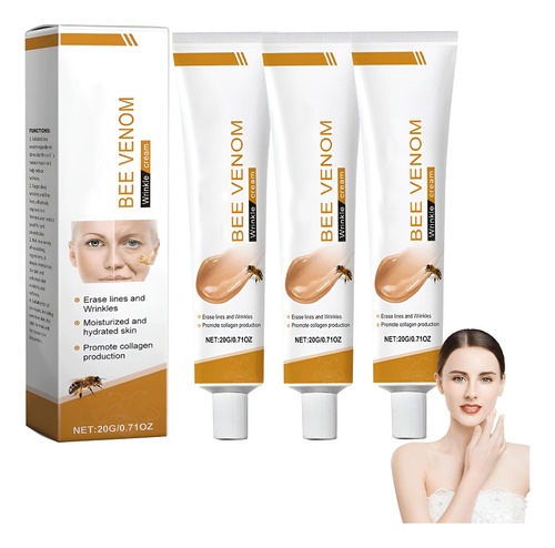 Creme de veneno de abelha TQIUH, creme antirrugas com veneno de abelha, creme hidratante, reafirmante e reabastecedor com veneno de abelha (pacote com 3) Creme de veneno de abelha, uma