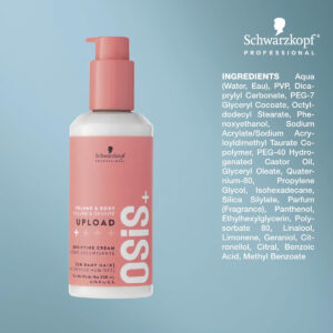 Creme OSiS+ Upload Volume Tratamento Capilar Leve Volumizante Controle de Estilo e Efeito de Volume — Proteção térmica para secar com secador de cabelo, 6,75 onças — Volume leve: Adicione volume a uma aparência suave, natural e fluida; o OSiS+ Upload oferece controle de estilo médio e deixa o cabelo com elasticidade, movimento e brilho saudável — PROTEÇÃO TÉRMICA: A fórmula condicionadora protege o cabelo dos danos causados pelo calor, e o tratamento volumizador tem um efeito antiestático para reduzir o desprendimento ao deixar o cabelo sentindo-se mais saciado — Estilo lúdico: seja ousado e estiloso looks de passarela ou salão de beleza; misture seus estilos com a linha OSiS+ de ceras, mousses e pós modeladores flexíveis e versáteis que proporcionam um efeito diferente a cada dia – FÁCIL APLICAÇÃO: coloque o creme modelador na mão; aplique uma pequena quantidade do produto volumizador nos cabelos úmidos; para obter o máximo de volume, seque o cabelo com uma escova redonda – ESTILO OSiS+: O sistema de modelagem profissional criativo OSiS+ permite que você ultrapasse limites, seja criativo e alcance o inatingível; feito para criar seu próprio estilo exclusivo