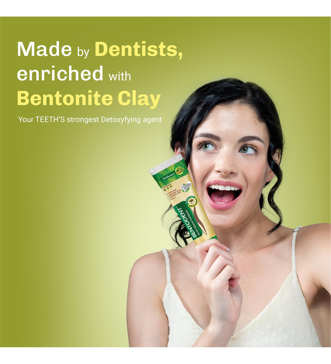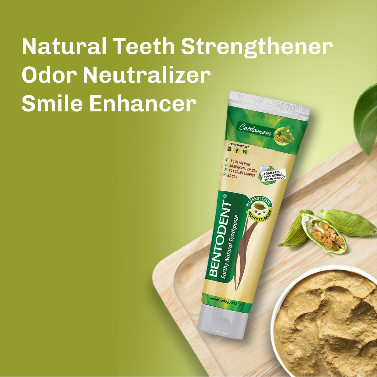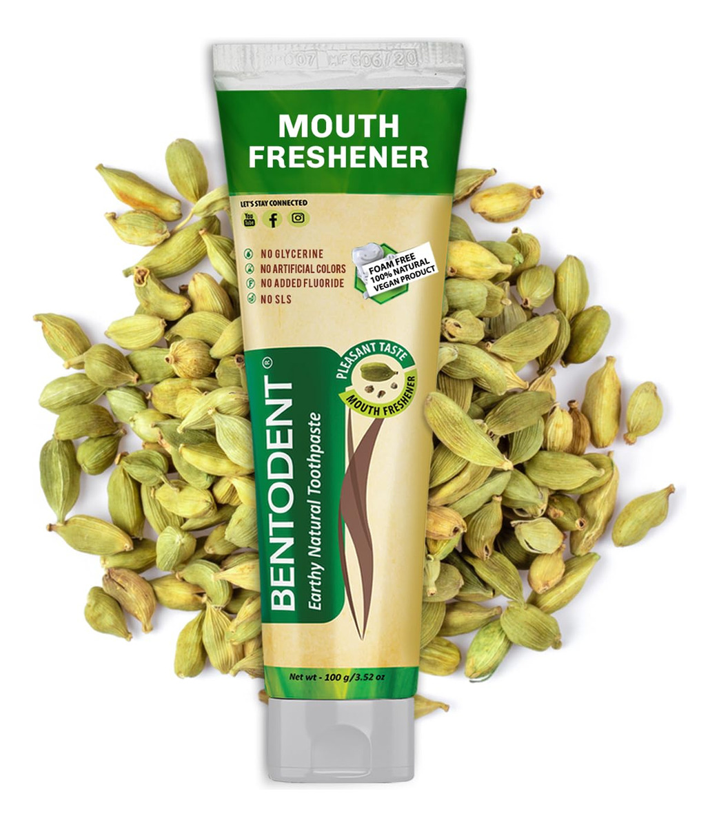 Pasta de dente de argila bentonita natural de cálcio sem flúor sensível à Bentodent com cardamomo – Abrace a pureza da natureza Descubra a fusão de tradição e inovação: a primeira fusão do mundo: a Bentodent orgulhosamente apresenta a primeira pasta de dente do mundo que combina as propriedades desintoxicantes naturais da argila bentonita de cálcio remineralizante com o poder aromático do cardamomo. Uma mistura pioneira projetada para pessoas exigentes que buscam eficácia e uma experiência natural incomparável para clareamento de dentes e dentes sensíveis. – Primeira fusão do mundo: a pasta de dente natural sem flúor remineralizante sensível ao bentodente apresenta orgulhosamente a primeira pasta de dente do mundo que combina as propriedades desintoxicantes naturais da argila bentonita remineralizante de cálcio com o poder aromático do cardamomo. Uma mistura pioneira projetada para pessoas exigentes que buscam eficácia e uma experiência natural incomparável. – Poder aromático do cardamomo: deleite-se com a essência requintada e doce e picante do cardamomo. Reconhecido por suas propriedades refrescantes e pela capacidade de promover a saúde bucal, o cardamomo diferencia esse creme dental natural sensível remineralizante sem flúor, oferecendo uma experiência única de escovação que revigora os sentidos e nutre a alma. – Fórmula natural incomparável: elaborada com o que há de melhor na natureza, nossa pasta de dentes natural sensível remineralizante sem flúor é uma prova de pureza e simplicidade. Livre de flúor, SLS e toxinas, oferece uma alternativa segura, eficaz e genuinamente natural aos cuidados bucais convencionais. – As virtudes de limpeza da argila bentonita de cálcio: adote a ação desintoxicante suave, mas potente, da argila remineralizante de bentonita de cálcio. Suas capacidades naturais de absorção garantem uma limpeza profunda, removendo impurezas e deixando sua boca fresca e revitalizada. Bom para dentes sensíveis e clareamento. – Liberdade sem flúor: junte-se a nós em uma nova era de atendimento odontológico. Nossa fórmula de creme dental natural sensível remineralizante sem flúor foi projetada para aqueles que exigem uma alternativa natural e segura sem comprometer a saúde bucal. – Promessa sem SLS e sem toxinas: acreditamos em uma abordagem suave à higiene bucal. Nosso creme dental natural sensível remineralizante sem flúor é livre de produtos químicos e aditivos agressivos, garantindo uma limpeza gentil, mas eficaz, de seus dentes e gengivas. – Ingredientes do creme dental natural de argila bentonita de cálcio sem flúor sensível à Bentodent: água purificada, terra de bentonita, sal, extrato de estévia vegetal purificado, óleo de chá de árvore, mentol, glicolipídios naturais, laranja Extrato, extrato de semente de toranja, aroma de cardamomo