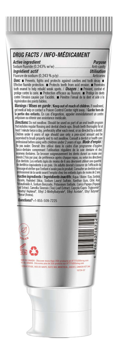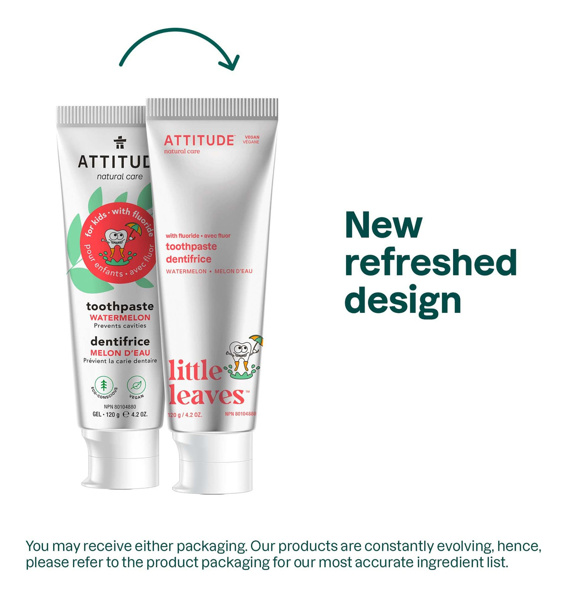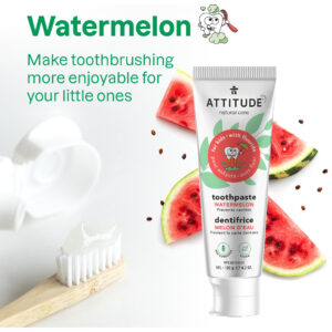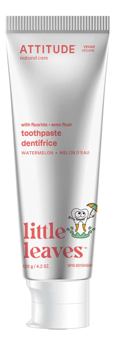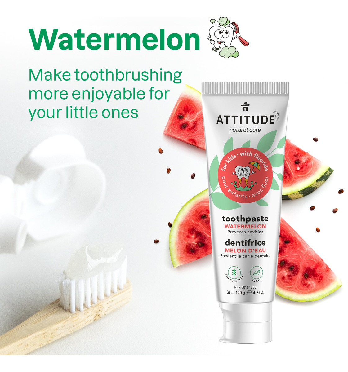 Pasta de dente ATTITUDE com flúor, previne cáries e cáries dentárias, vegana, sem crueldade e sem açúcar, melancia, 4,2 onças — Creme dental vegetal VERDADEIRAMENTE EFICAZ: contém fluoreto de sódio, que ajuda a proteger os dentes contra cáries e erosão — PASTA DE DENTES FEITA COM INGREDIENTES ATENCIOSOS: feita de ingredientes vegetais e minerais, como folhas de chá verde, que têm propriedades antioxidantes e ajudam a manter uma boa saúde bucal e dental e mamão folhas, que contêm papaína e, combinada com a escovação, essa pasta de dente contribui para reduzir a placa bacteriana – DIVERTIDA DE USAR PASTA DE DENTE: contém sabor de melancia, o que torna a higiene dental mais atraente – PASTA DE DENTES CERTIFICADA PELA PETA: Este produto é vegano, o que significa que não contém ingredientes de origem animal e é livre de crueldade, a fórmula também é biodegradável – PRODUTO SUSTENTÁVEL: Nossa fórmula é biodegradável, com embalagem reciclável