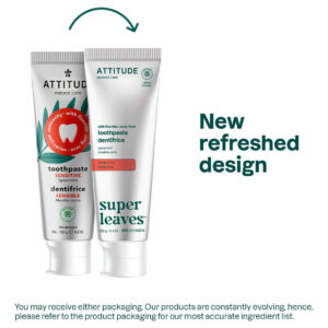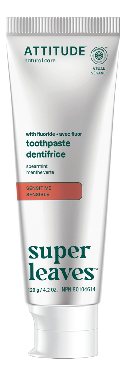 Pasta de dente ATTITUDE com flúor, previne cáries e cáries dentárias, vegana, sem crueldade e sem açúcar, sensível, hortelã, 4,2 onças — Creme dental vegetal VERDADEIRAMENTE EFICAZ: contém fluoreto de sódio, que ajuda a proteger os dentes contra cáries e erosão — PASTA DE DENTES FEITA COM INGREDIENTES ATENCIOSOS: feita de ingredientes vegetais e minerais, como folhas de chá verde, que têm propriedades antioxidantes e ajudam a manter uma boa saúde bucal e dental e folhas de mamão, que contêm papaína e, combinada com a escovação, essa pasta de dente contribui para reduzir a placa bacteriana – CREME DENTAL PARA DENTES E GENGIVAS SENSÍVEIS: contém nitrato de potássio que ajuda no alívio da sensibilidade quando usado regularmente – PASTA DE DENTES SUSTENTÁVEL: Este produto é vegano, o que significa que não contém ingredientes de origem animal e é livre de crueldade. A fórmula também é biodegradável – PASTA DE DENTES VERIFICADA PELA EWG: esta pasta de dente não contém ingredientes preocupantes, de acordo com os cientistas do Environmental Working Group