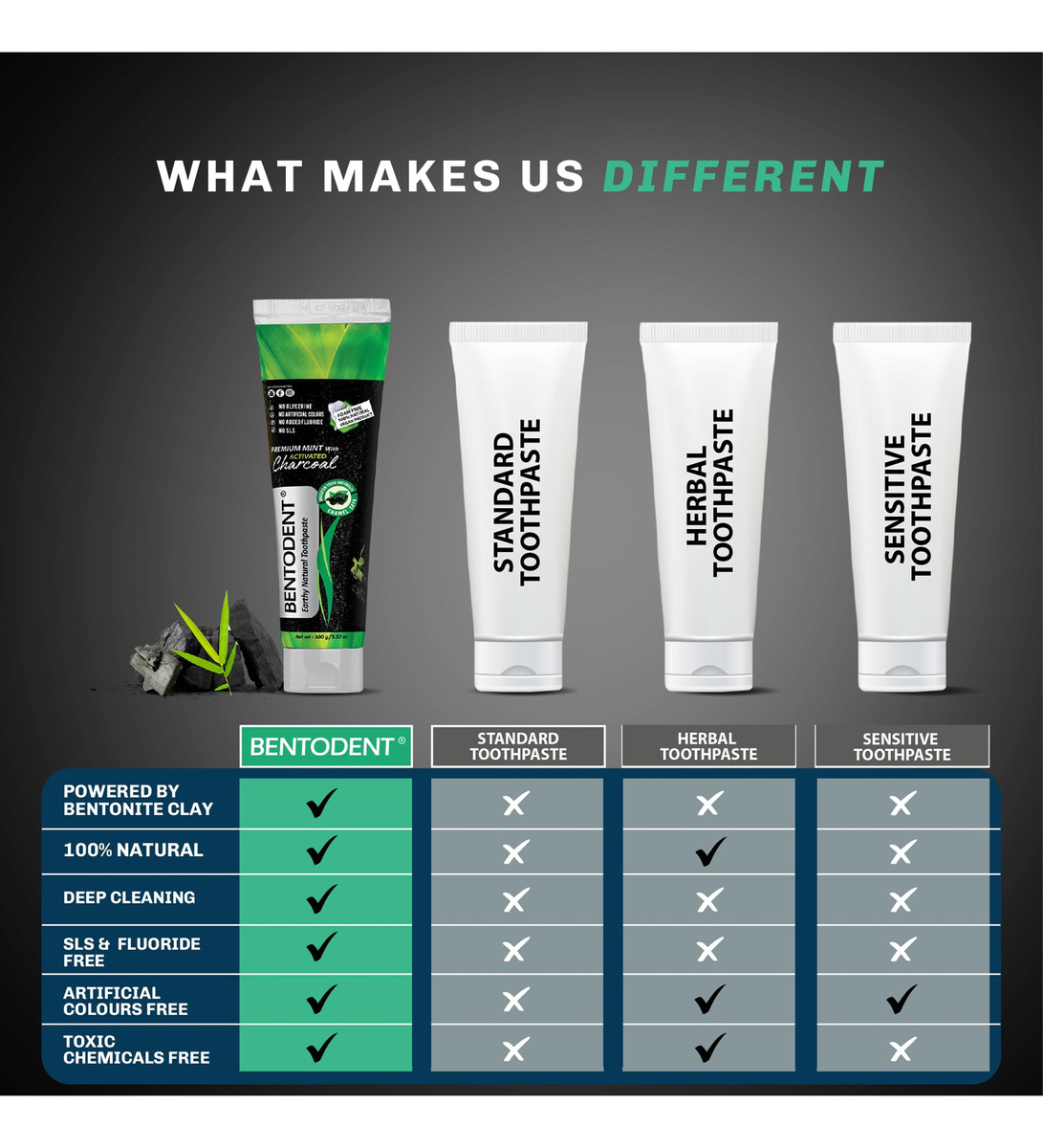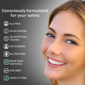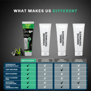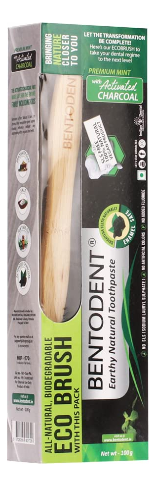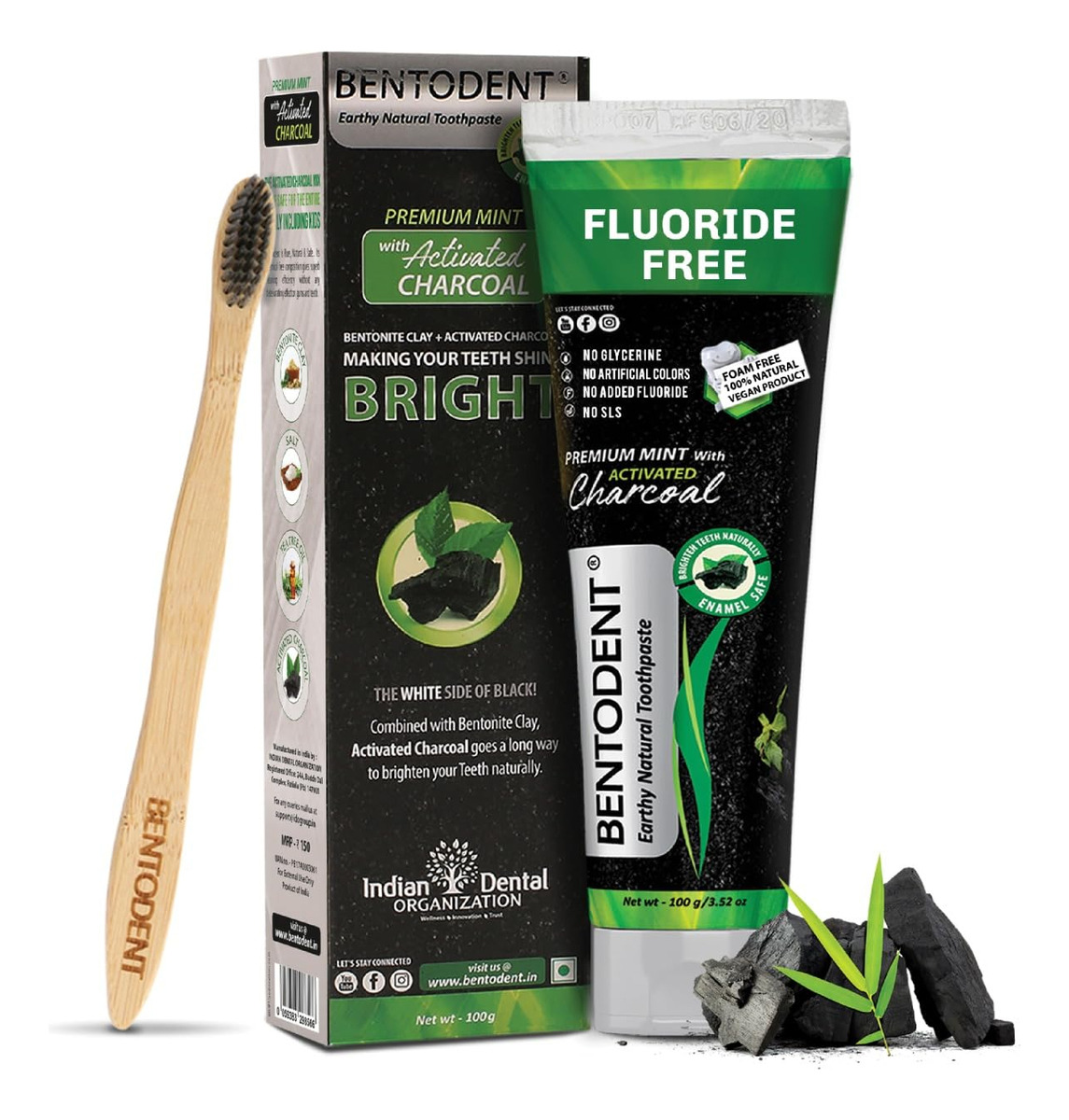 Creme dental natural Bentodent | Quando o Ayurveda encontra a ciência moderna | Alimentado pela beleza das ervas exóticas | O creme dental natural Bentodent Earthly é livre de flúor, sem SLS, sem cores artificiais, orgânico, herbáceo e vegano. Bom para todas as idades, incluindo crianças, pois não contém flúor. Por que creme dental natural Bentodent? Bentodent, o creme dental natural terrestre é isento de laurilsulfato de sódio. Ingrediente natural A argila bentonita proporciona igual eficiência de limpeza sem deteriorar o efeito na gengiva e nos dentes. Também tem efeito clareador dentário a longo prazo. A vantagem da mais deliciosa hortelã para refrescar o hálito e apoiar a saúde bucal INGREDIENTES NATURAIS E SEGUROS: – Água purificada, terra de bentonita, sal, mentol, carvão ativado, glicolipídios naturais, extrato de estévia purificado, óleo essencial de hortelã, óleo de melaleuca, extrato de laranja, extrato de semente de toranja – DUPLA NATURAL DE CLAREAMENTO DE DENTES: os poderes naturais combinados do carvão orgânico ativado e do bonentol A pasta de dentes natural remineralizante totalmente sensível, sem flúor, feita sem produtos químicos, ajuda a remover a placa bacteriana e combate o mau hálito a cada uso. Com a escovação, enquanto a argila bentonita ajuda a limpar, o carvão ativado Enamel Safe ajuda a remover manchas dos poros dos dentes, ajuda no clareamento e tem propriedades desintoxicantes poderosas que são comprovadamente seguras e atendem aos mais altos padrões naturais de higiene bucal – CREME DENTAL BRANQUEADOR DE DENTES SUAVE E SEGURO INGREDIENTES: Creme dental remineralizante sensível ao bentodente Creme dental branqueador orgânico ativado o carvão, com a escovação, limpa suavemente os dentes sem prejudicar o esmalte dos dentes. Não contém cores e sabores artificiais que, em geral, afetem negativamente o corpo, portanto, o creme dental branqueador dental natural bentodent se torna a opção mais segura e viável para uso diário na escovação matinal dos dentes com confiança. – CREME DENTAL BRANQUEADOR DENTÁRIO PURO E SIMPLES: O creme dental branqueador natural remineralizante sensível ao Bentodent, sem flúor, sem flúor, sem SLS (Lauril sulfato de sódio), sem corantes artificiais, orgânico e vegano – CUIDADO BUCAL EQUILIBRADO: Mais do que clareamento dentário, nosso sensível Creme dental com carvão orgânico ativado natural sem flúor remineralizante promove a saúde geral da boca, ajudando a manter o hálito fresco e um pH equilibrado. – CREME DENTAL DE CARVÃO ORGÂNICO DE QUALIDADE SUPERIOR: – você obtém um conjunto de creme dental de carvão ativado natural remineralizante sensível, sem flúor, novo e de alta qualidade, que vem com um sorriso radiante e um hálito fresco – MINTY FRESH BREATH: infundido com hortelã natural, remineralizante sensível ao Bentodent O creme dental de carvão orgânico ativado natural sem flúor garante que seu hálito seja refrescante fresco, deixando sua boca limpa e fresca durante todo o dia. – CREME DENTAL DE VIAGEM PARA BRANQUEAMENTO DENTÁRIO DIÁRIO: formulado para uso diário Creme dental natural remineralizante sensível ao bentodente, sem danificar o esmalte, mantendo os dentes em seu pico. – Creme dental natural de carvão ativado sem flúor sensível à bentodnet INGREDIENTES: água purificada, terra bentonita, carvão ativado, sal, purificado Extrato de estévia à base de plantas, óleo de chá de árvore, mentol, glicolipídios naturais, extrato de laranja, extrato de semente de toranja, aroma – inclui 1 carvão pasta de dente + 1 escova de dentes macia de bambu