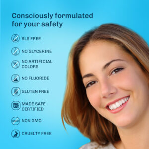 Creme dental natural remineralizante sem flúor sensível à bentodente | Pasta de dente remineralizante de argila bentonita de cálcio sem flúor | Quando o Ayurveda encontra a ciência moderna | Alimentado pela argila bentonita remineralizante de cálcio e pelas vantagens de ervas exóticas | O creme dental natural remineralizante sem flúor sensível à terra Bentodent é um creme dental de argila bentonita de cálcio, creme dental remineralizante Sem flúor, sem glúten, sem agente de espuma, sem cores artificiais, orgânico, herbal e vegano. Bom para todas as idades, incluindo crianças, pois não contém flúor. Por que remineralizar o creme dental natural de argila bentonita de cálcio Bentodent? Experimentos de vários estudos indicaram que o produto químico Lauril Sulfato de Sódio (SLS) presente em cremes dentais não naturais normais interagirá com a deposição de flúor no esmalte dentário e diminuirá o efeito cariostático. Isso os torna mais propensos à cavidade e aumenta a hipersensibilidade. A glicerina, outro ingrediente do creme dental não natural normal, é um agente adoçante que atua como uma boa fonte de alimento para o crescimento bacteriano. Forma uma camada pegajosa nos dentes e não permite que o efeito de outros ingredientes atinja o esmalte. Ele só dá à pasta de dente a sensação de pasta, mas é desnecessário e impede que os dentes se remineralizem. Bentodent, o creme dental natural remineralizante sensível sem flúor, é isento de laurilsulfato de sódio e glicerina. Seu ingrediente natural, a argila bentonita remineralizante, oferece igual eficiência de limpeza sem deteriorar o efeito nas gengivas e nos dentes. A bondade da mais deliciosa hortelã para refrescar o hálito e apoiar a saúde bucal. INGREDIENTES NATURAIS E SEGUROS: – Água purificada, argila bentonita de cálcio, sal real, extrato de estévia purificado à base de plantas, mentol, óleo de melaleuca, óleo essencial de hortelã – Seu limpador oral diário: Bentodent, um creme dental natural de argila bentonita de cálcio sensível sem flúor, é um excelente enxaguante bucal porque é muito bom em absorvendo e neutralizando toxinas. Ajuda na remineralização e proporciona igual eficiência de limpeza sem o efeito deteriorante dos agentes espumantes. Ele limpa ligando-se a metais pesados e toxinas ao redor dos dentes e gengivas. – Ingredientes remineralizantes orgânicos inspirados na Ayurveda: nosso creme dental natural remineralizante sensível sem flúor combina a sabedoria do Ayurveda com uma fórmula vegetariana 100% natural, garantindo uma suavidade, mas eficaz. O creme dental natural Bentodent é um creme dental de argila bentonita de cálcio que limpa suavemente os dentes sem causar danos ao esmalte dos dentes. Como não contém cores e sabores artificiais que, em geral, afetem negativamente o corpo, o creme dental remineralizante natural bentodent se torna a opção mais segura e viável para usar na escovação matinal diária dos dentes com confiança. – Creme dental de argila bentonita natural remineralizante certificada Made Safe, sem flúor: confie em cada pincelada com nossa pasta de dente de argila bentonita de cálcio remineralizante certificada Made Safe, garantindo é livre de ingredientes nocivos. Grande problema com as crianças: ao escovar os dentes, elas geralmente engolem a pasta de dente completamente em vez de cuspir, o que realmente não é seguro. Argila bentonita de cálcio O creme dental natural sem flúor, como o bentodent, com toda a composição orgânica e sem sulfato de louro, sem flúor, torna-se totalmente seguro para crianças – Sem reação: sendo sensível, sem flúor, o creme dental natural de argila bentonita de cálcio remineralizante, que não seria a causa de nenhum tipo de reação alérgica. O principal creme dental remineralizante contém louro sulfato de sódio como ingrediente que é altamente irritante e pode causar inflamação na boca ou alergias. Usar um creme dental de argila bentonita natural sem flúor é sua escolha para evitar reações alérgicas e proteger a saúde de sua boca – Ingredientes do creme dental natural de argila bentonita bentodente de cálcio remineralizante sensível: água purificada, terra de bentonita, sal, extrato de estévia vegetal purificado, óleo de chá de árvore, mentol, glicolipídios naturais, extrato de laranja, Extrato de semente de toranja, Aroma Mint