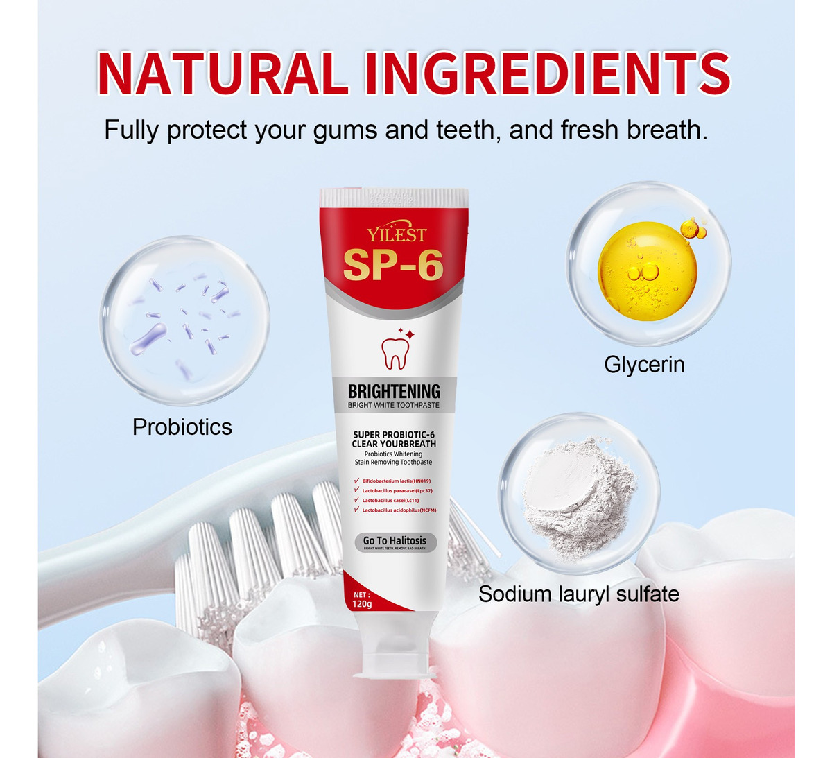 O tubo de 120 g oferece um uso duradouro. Uma quantidade do tamanho de uma ervilha em sua escova de dentes e escove bem.