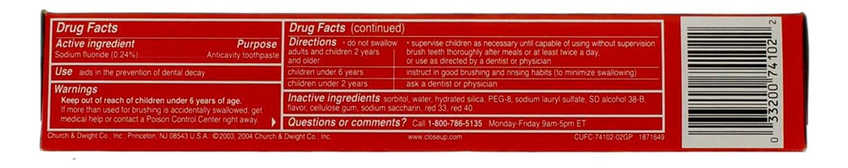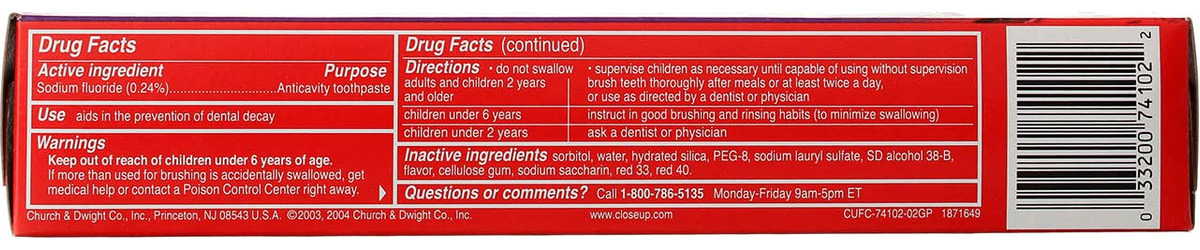 Creme Dental Close-up, Gel Vermelho Canela Com Flúor, 177ml