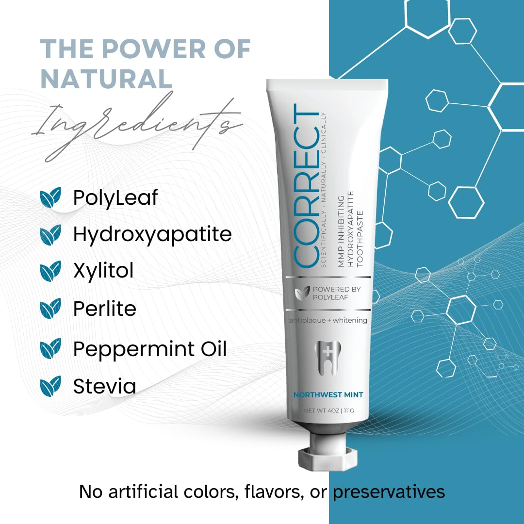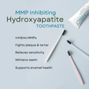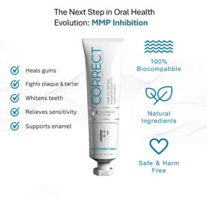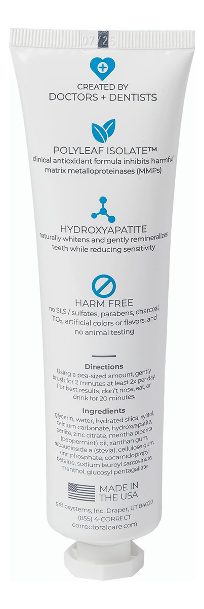 O creme dental Correct Oral Care foi desenvolvido por uma equipe de profissionais odontológicos, médicos e de pesquisa. A inibição do PolyLeaf MMP combate a erosão das gengivas e ajuda a reconstruir o tecido oral saudável. A hidroxiapatita combate as cáries, fortalece o esmalte, reduz a sensibilidade e embranquece os dentes. O xilitol adiciona proteção adicional ao esmalte. Perlite fornece polimento de esmalte superior com menos abrasão. Sem SLS, dióxido de titânio, parabenos, carvão vegetal, cores ou sabores artificiais, conservantes ou testes em animais. Sabor de hortelã do noroeste. A embalagem é reciclável e não contém BPA. – CRIADA POR MÉDICOS E DENTISTAS – Projetada e desenvolvida por bioquímicos, médicos, dentistas e cirurgiões orais com a mentalidade de proteger as gengivas e os tecidos da boca, clarear e fortalecer os dentes, refrescar o hálito, melhorar a higiene e prevenir processos patológicos orais. Especialmente eficaz após procedimentos odontológicos menores ou maiores ou para problemas autoimunes, mas projetado para qualquer pessoa que queira melhorar sua saúde bucal geral. – INIBE MMPs NOCIVAS – formulado para combater metaloproteinases de matriz (MMPs) hiperativas ou enzimas que contribuem para problemas bucais, como doenças gengivais, periodontite, degradação do colágeno e câncer bucal. Nas doenças bucais, as MMPs propagam doenças virais infecciosas e, na periodontite, as MMPs ajudam a destruir as estruturas que mantêm os dentes no lugar. No câncer bucal, as MMPs ajudam as células cancerosas a se espalharem quebrando barreiras, facilitando o crescimento e a movimentação do câncer para outras partes do corpo. – EMBRANQUECE E REMINERALIZA SEM SENSIBILIDADE – Sendo biocompatível, a hidroxiapatita é um mineral natural que é um componente importante de nossos dentes e ossos. Ele se liga diretamente ao esmalte dentário, ajudando a fortalecer e reparar imperfeições. Ele naturalmente embranquece e remineraliza o esmalte, ao mesmo tempo que reduz a sensibilidade ao remineralizar as passagens (túbulos) para os nervos. Em comparação com o flúor, a hidroxiapatita fornece um método direto de restaurar e proteger a superfície dos dentes. – SUAVE E EFICAZ – A perlita lustra e remove suavemente as manchas superficiais para clarear os dentes. Perlite é um novo abrasivo dentário à base de sílica vulcânica, duro o suficiente para remover manchas, mas não o suficiente para remover esmalte saudável. Estabelecido por meio de índices de abrasão dentária e de esmalte dentário. – 100% LIMPO E SEGURO – SEM flúor, SLS, parabenos, ftalatos, carragenina, dióxido de titânio, triclosan, glúten ou BPA. NÃO TESTADO EM ANIMAIS. Embalagem sustentável e reciclável. Seguro para todas as idades. Selecionado por dentistas pediátricos quanto à segurança e eficácia.