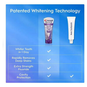 os resultados do dia seguinte A fórmula revolucionária da Crest oferece dentes mais brancos em apenas um dia. FÓRMULA