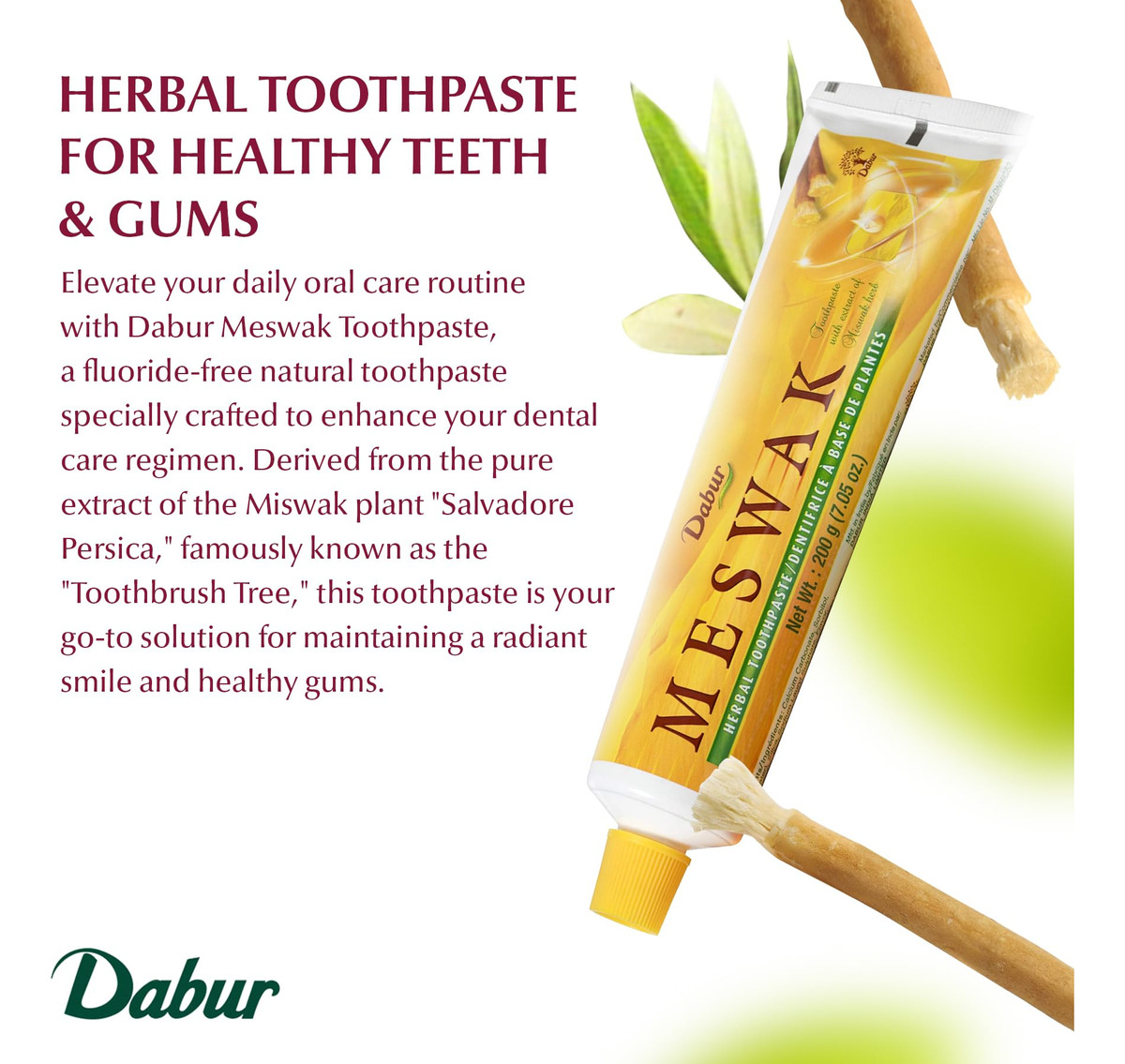 Creme Dental Dabur Meswak, Sem Flúor, Goma Oral, Cuidados De