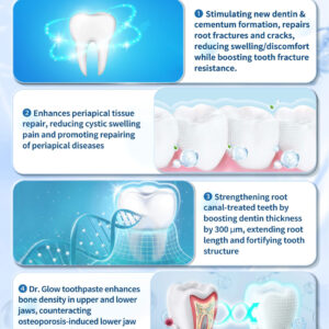 A pasta de dente repara os desconfortos do canal radicular, evita a terapia do canal radicular Pasta de dente com hidroxiapatita para reparação dentária, creme dental sensível para cuidados com os dentes para adultos Creme dental remineralizante sem flúor – *Pasta de dente profissional para pós-canal radicular – A pasta de dente pós-canal radicular Dr. Glow é especialmente formulada para adultos submetidos ao tratamento pós-canal radicular. Nossa fórmula avançada fornece alívio direcionado do desconforto associado ao tratamento do canal radicular, que é o desconforto da dor, inchaço e fratura dentária, garantindo a reparação do dente após o tratamento. – *O uso diário melhora a densidade óssea — Fortalece o esmalte dentário e a densidade óssea, nosso creme dental de hidroxiapatita é ideal para uso diário. Ao aumentar a densidade óssea, o creme dental remineralizante Dr. Glow previne fraturas dentárias após o tratamento do canal radicular, reparando o esmalte e, assim, prolonga a vida útil dos dentes. – *Creme dental sensível ao desconforto do canal radicular para adultos — Aproveitando o poder de seus ingredientes especiais, nosso creme dental reparador de gengivas melhora efetivamente a capacidade reparadora dos tecidos periapicais, reduzindo o inchaço cístico e promovendo o reparo de doenças periapicais, reduzindo a dor cística e promovendo o reparo de doenças periapicais, reduzindo o inchaço cístico e promovendo a reparação de doenças periapicais. confortos do tratamento do canal radicular. – *Creme dental sem flúor para adultos — Creme dental Dr. Glow, reparador de gengivas tem a mais recente fórmula aprimorada para melhorar seu ambiente oral. Ele contém hidroxiapatita, lactobacilo, fator de crescimento fibrina FS, histidina, arginina e óleo de cravo. – * Cuidado dentário profissional em casa – O creme dental remineralizante Dr. Glow Tooth Repair oferece proteção abrangente para sua saúde bucal. Ao fortalecer os dentes e aumentar a densidade óssea, ajuda a prevenir fraturas dentárias e prolonga a vida útil dos dentes tratados, promovendo o bem-estar dental a longo prazo.