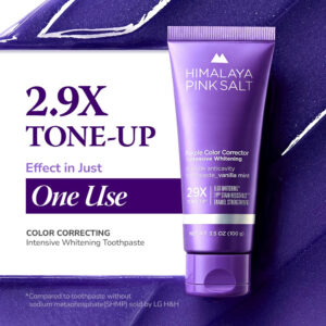 De acordo com as teorias modernas da geologia estrutural, os Himalaias foram criados por movimentos tectônicos causados pela colisão da placa indiano-australiana e da placa euro-asiática. A formação do sal rosa do Himalaia é um pouco diferente dependendo do estudioso, mas se observarmos o pano de fundo da formação do sal rosa do Himalaia, primeiro, a água do mar do Tétis, que estava entre as placas durante o movimento tectônico da placa indiano-australiana e da placa euro-asiática, foi isolada, e a antiga luz do sol evaporou a água limpa do mar para formar sal. Depois disso, o movimento contínuo da placa indiana elevou a placa tibetana e o sal formado foi empurrado para baixo da cordilheira, criando o atual sal rosa do Himalaia. Esse sal foi transformado em um sal cristalino puro pela recristalização repetida do sal por meio da pressão devido ao peso das montanhas, à atividade geotérmica e à atividade vulcânica por um longo período de tempo. O creme dental Himalaya Pinksalt é feito com sal rosa do Himalaia, um dos ingredientes naturais mais puros do mundo. – Creme dental roxo branqueador intensivo: embalado com pureza salina de mais de 96% de cloreto de sódio e minerais essenciais, este “creme dental roxo” de sal rosa do Himalaia refresca o hálito, clareia os dentes e é suave para as gengivas e a boca. – Efeito tonificante de 2,9 vezes em apenas um uso: experimente brilho instantâneo com nosso creme dental branqueador Purple Color Corrector, que neutraliza manchas e elimina tons de amarelo para um sorriso radiante. Eleve seu atendimento odontológico com este inovador corretor de cores. – Maravilhas do clareamento semanal: obtenha dentes visivelmente mais brancos em apenas uma semana com uma fórmula 9,6 vezes mais eficaz do que a pasta de dente comum. O sal rosa do Himalaia e os ingredientes naturais oferecem resistência a manchas 24 horas e fortalecem o esmalte para uma saúde bucal ideal. – Minty Fresh Purple: comece o dia revigorado com o sabor doce de baunilha e menta de nossa pasta de dente roxa. Desfrute de uma sensação na boca limpa e vibrante que dura o dia todo. – Puramente alimentada pela natureza: nossa pasta de dente é de origem natural, formulada sem parabenos, glúten, ftalatos e triclosan. Deixe sua saúde bucal com a fórmula exclusiva e patenteada dos EUA de HIMALAYA PINKSALT.