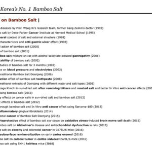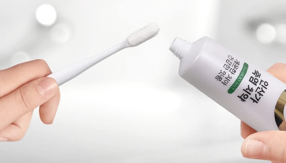 Ingredientes: Sorbitol, sílica hidratada, água, cloreto de sódio (9 vezes sal de bambu cozido), glicerina, PEG-32, metil cocoil taurato de sódio, goma de celulose, sabor ideal, dióxido de titânio, esteviosídeo, óleo de folha de eucalipto globulus, xilitol, extrato de semente de Citrus Grandis (toranja), mentol, mentha viridis (Óleo de folha de hortelã), sabor de limão, extrato de Ecklonia Cava, extrato de Commiphora Myrrha (tintura de mirra), extrato de raiz de Krameria Triandra (tintura de Rhatany), extrato de Taraxacum officinale (dente de leão), extrato de folha de Camellia Sinensis (chá verde), Salvia officinalis ( Extrato de folha de sálvia, extrato de flor de Anthemis Nobilis (camomila), extrato de flor de calêndula officinalis – sal de bambu cozido 9 vezes, 3%! LIVRE DE FLÚOR E LIVRE DE AGENTES ESPUMANTES SINTÉTICOS – O SAL DE BAMBU é bom para inflamação na gengiva e na cavidade dos dentes. – Um ESTUDO mostra que se você adicionar sal de bambu de 3% de solução à pasta de dente, melhora a REMINERALIZAÇÃO DOS DENTES e suprime a BACTÉRIA DA CÁRIE. – Mais de 98% dos ingredientes são derivados naturalmente. Abrasivo macio para minimizar os danos aos dentes durante a limpeza da placa. — Sal de bambu da melhor qualidade da melhor empresa de sal de bambu da Coreia.