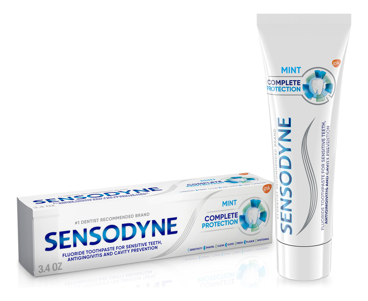 Creme dental sensível Sensodyne Complete Protection para dentes sensíveis – 3,4 onças – Comprovadamente ajuda a aliviar a dor de sensibilidade dentária – Fortalece e endurece o esmalte – Ajuda a prevenir a gengivite – Oferece proteção cárie e sabor fresco – Melhores resultados com escovação duas vezes ao dia