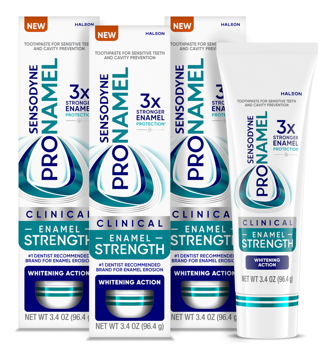 Creme dental fortalecedor de esmalte clínico Sensodyne Pronamel, ação clareadora, 3,4 onças (pacote com 3) – Três tubos de 3,4 onças de creme dental Sensodyne Pronamel Clinical Enamel Strength Whitening Action – Esmalte 3 vezes mais forte (2) e proteção de esmalte 24 horas por dia, 7 dias por semana (4) – Apoiado por 17 anos de ciência do esmalte e ajuda a proteger os dentes por toda a vida (4) – Sistema de clareamento avançado e seguro para o esmalte 40% maior ação clareadora (5) – Repara 66% dos microdanos (3) no esmalte amaciado com ácido (4) – Desfrute da espuma suave e do sabor cítrico de menta fresca que deixa uma sensação de limpeza duradoura