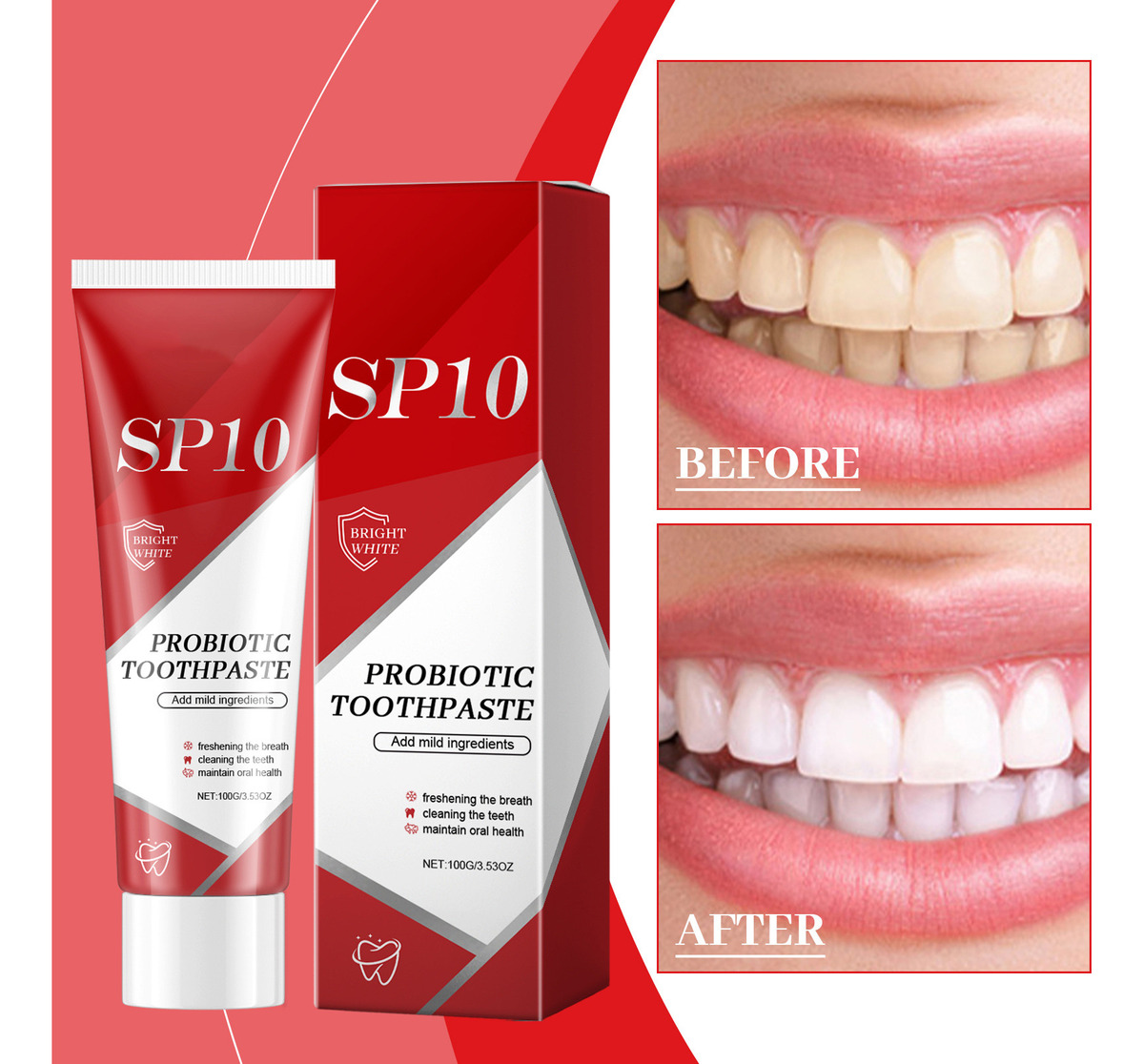 dente SP-10 para limpeza bucal Amarelecimento dos dentes Protegendo as gengivas Firmando os dentes e cuidando do hálito fresco 100g