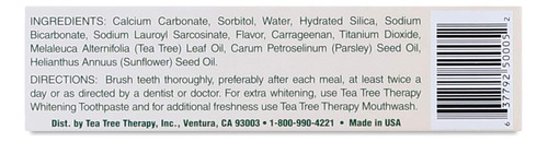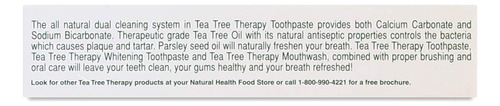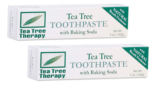 Pasta de dente Tea Tree Therapy com bicarbonato de sódio 5 onças (pacote com 2) – Pasta de dente para terapia com melaleuca – Com bicarbonato de sódio e purificador natural de hálito, que são todos sistemas naturais de limpeza dupla na pasta de dente Tea Tree Therapy – 5 onças – Dimensão da embalagem do item: 1,73" L x 6,78" L x 1,4" H