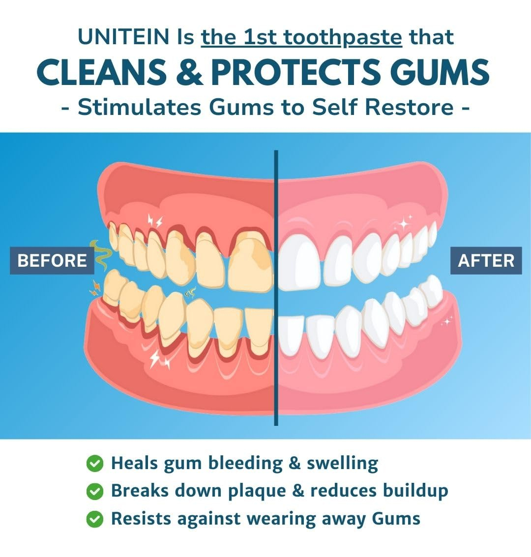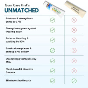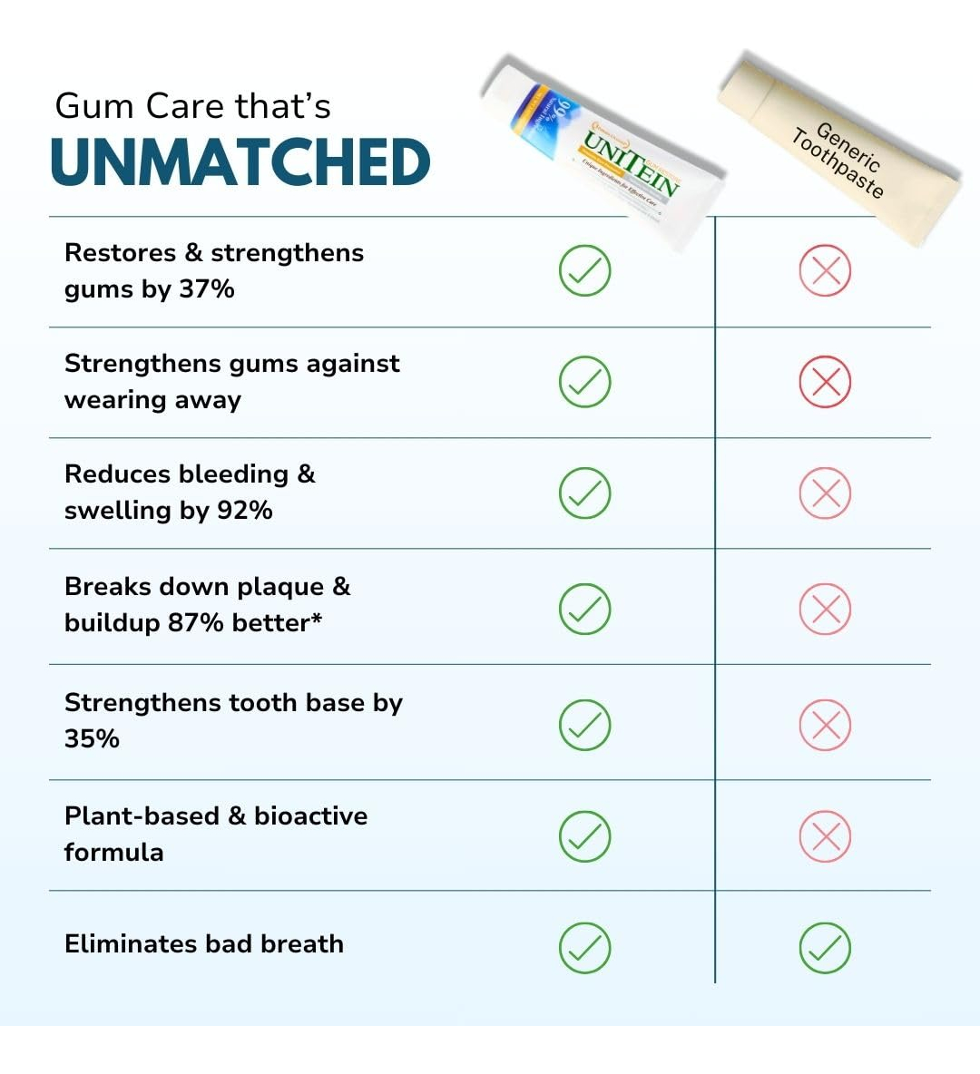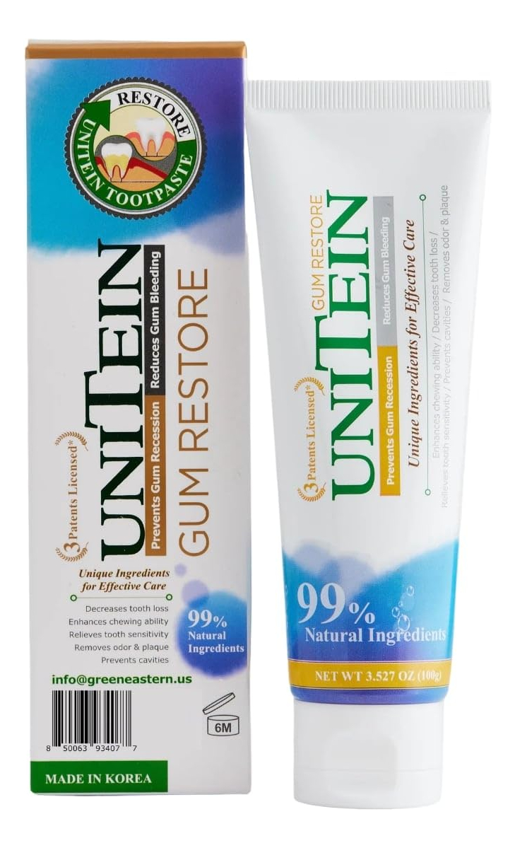Creme dental UNITEIN Gum Restore, melhora e protege gengivas danificadas e sangrantes, decompõe a placa bacteriana, resiste ao tártaro, fórmula vegetal, 99% de ingredientes naturais, livre de flúor, triclosan, microesferas – Fórmula natural: feita com 99% de ingredientes naturais, esta pasta de dente à base de plantas não contém flúor, triclosan, microesferas, SLS ou outros produtos químicos agressivos. – Nome do tipo de embalagem: Tubo – Sabor: Mild Mint – Formulário do item: Pasta – Quantidade da embalagem do item: 1 – Peso do item: 0,22 libras – Característica do material: à base de plantas