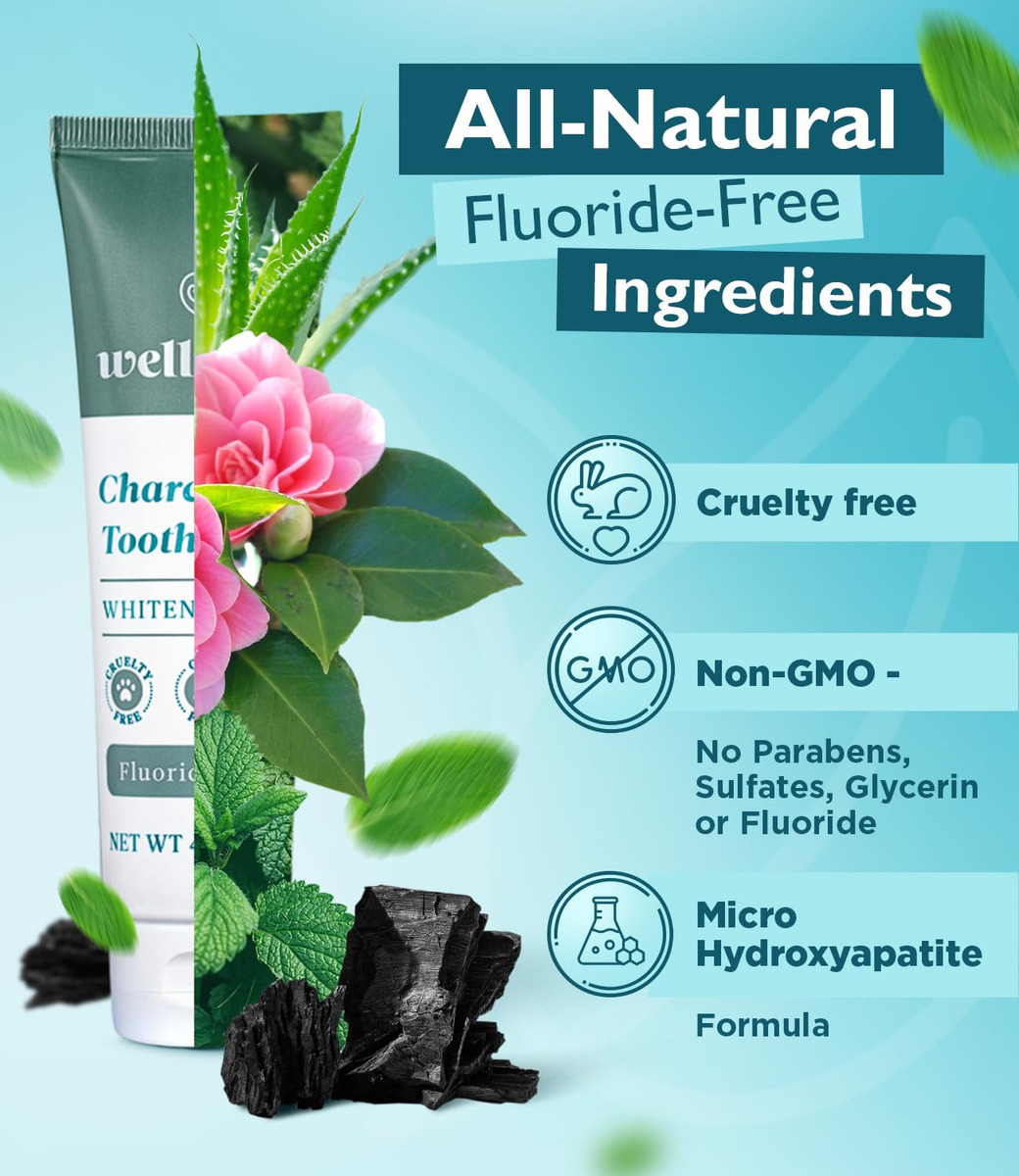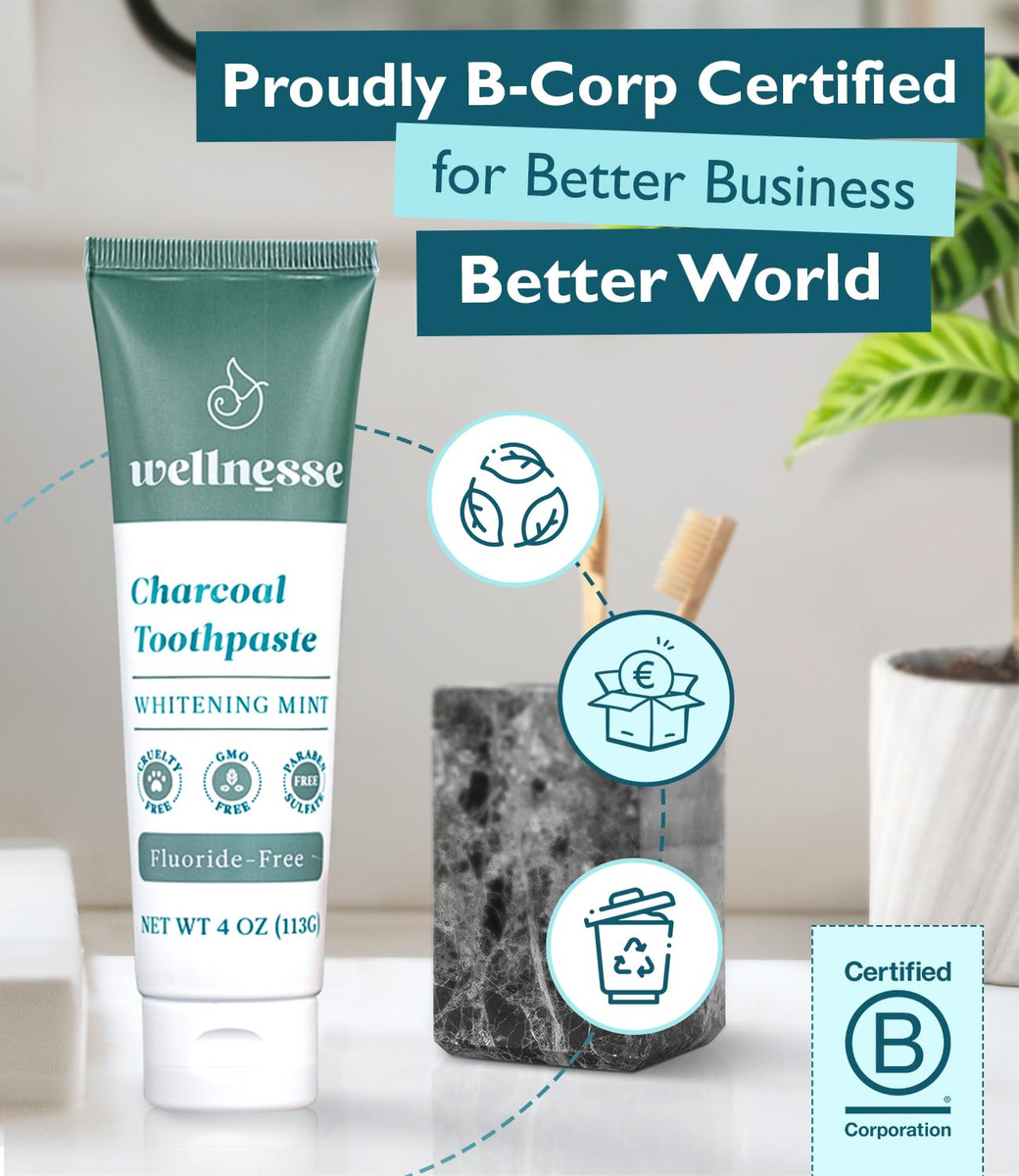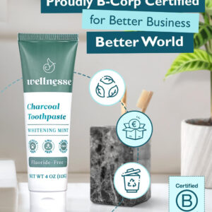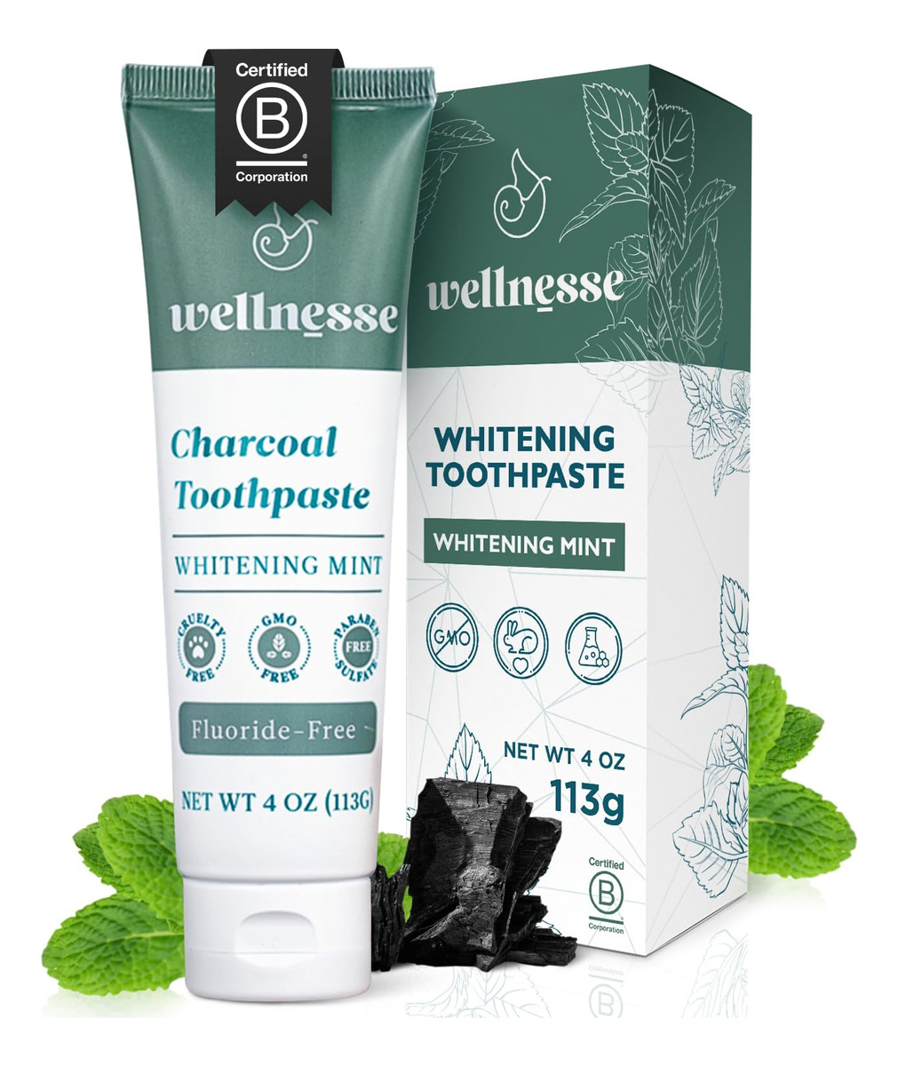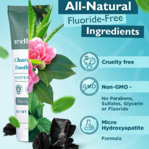 Creme dental purificante de carvão vegetal Wellnesse – clareamento vegano sem flúor para adultos Descubra a magia do cuidado odontológico natural com nosso creme dental com carvão ativado. Projetado para pessoas preocupadas com a saúde e ecologicamente correto, este creme dental sem flúor combina o poder do clareamento dental com carvão com os benefícios do creme dental sem flúor para cuidados bucais para adultos. Suave, mas eficaz, sua mistura exclusiva garante um sorriso luminoso, ao mesmo tempo em que fortalece os dentes. Este creme dental sem flúor não é apenas mais um produto odontológico; é uma prova de saúde holística e de um sorriso radiante. Pronto para abraçar o brilho natural? – Poder clareador de carvão vegetal – Pureza sem flúor – Vegano e orgânico – Purificação ativada Criada para adultos que buscam uma alternativa mais limpa e saudável, nossa pasta de dente respeita você e o meio ambiente. Livre de ingredientes nocivos, oferece uma experiência fresca e não irritante, garantindo que cada pincel realce seu melhor sorriso. Mergulhe em um mundo onde ingredientes naturais, como carvão ativado, se encontram com cuidados dentários inovadores. Eleve sua higiene bucal com Wellnesse, onde a natureza e a ciência criam o sorriso perfeito. – Testado e comprovado: nosso creme dental com carvão ativado oferece uma diferença notável no brilho dos dentes. Feito com pó de carvão vegetal, ele remove impurezas e manchas, oferecendo uma experiência natural de creme dental branqueador. – Solução de sensibilidade: aborde a sensibilidade dentária com nossa fórmula exclusiva. Com chá verde em pó e hidroxiapatita, nosso creme dental com xilitol fortalece os dentes, tornando-o a escolha ideal para quem sofre de dentes sensíveis que buscam alívio e reparação. – Frescor sem sobrecarga: experimente um hálito fresco sem a sensação avassaladora de menta. Combinando chá verde em pó, nosso creme dental garante um sabor sutil e agradável para uma experiência refrescante de higiene bucal. – Ingredientes puros e seguros: priorizando consumidores preocupados com a saúde, nosso creme dental é isento de flúor e glicerina. Feito com ingredientes seguros, ele se destaca como um creme dental de xilitol vegano e não irritante, evitando produtos químicos nocivos.
