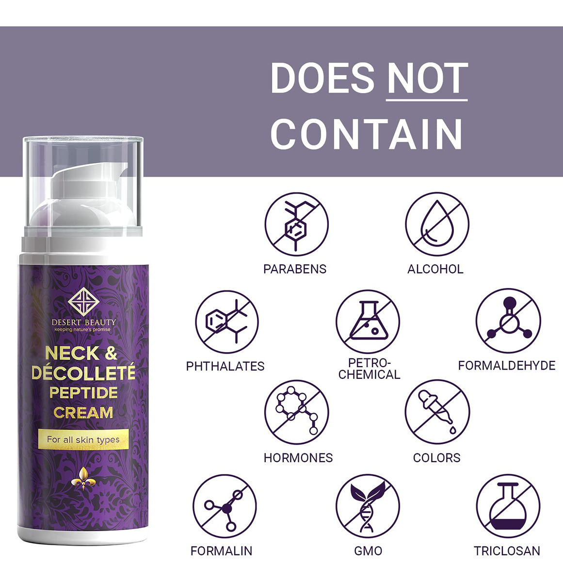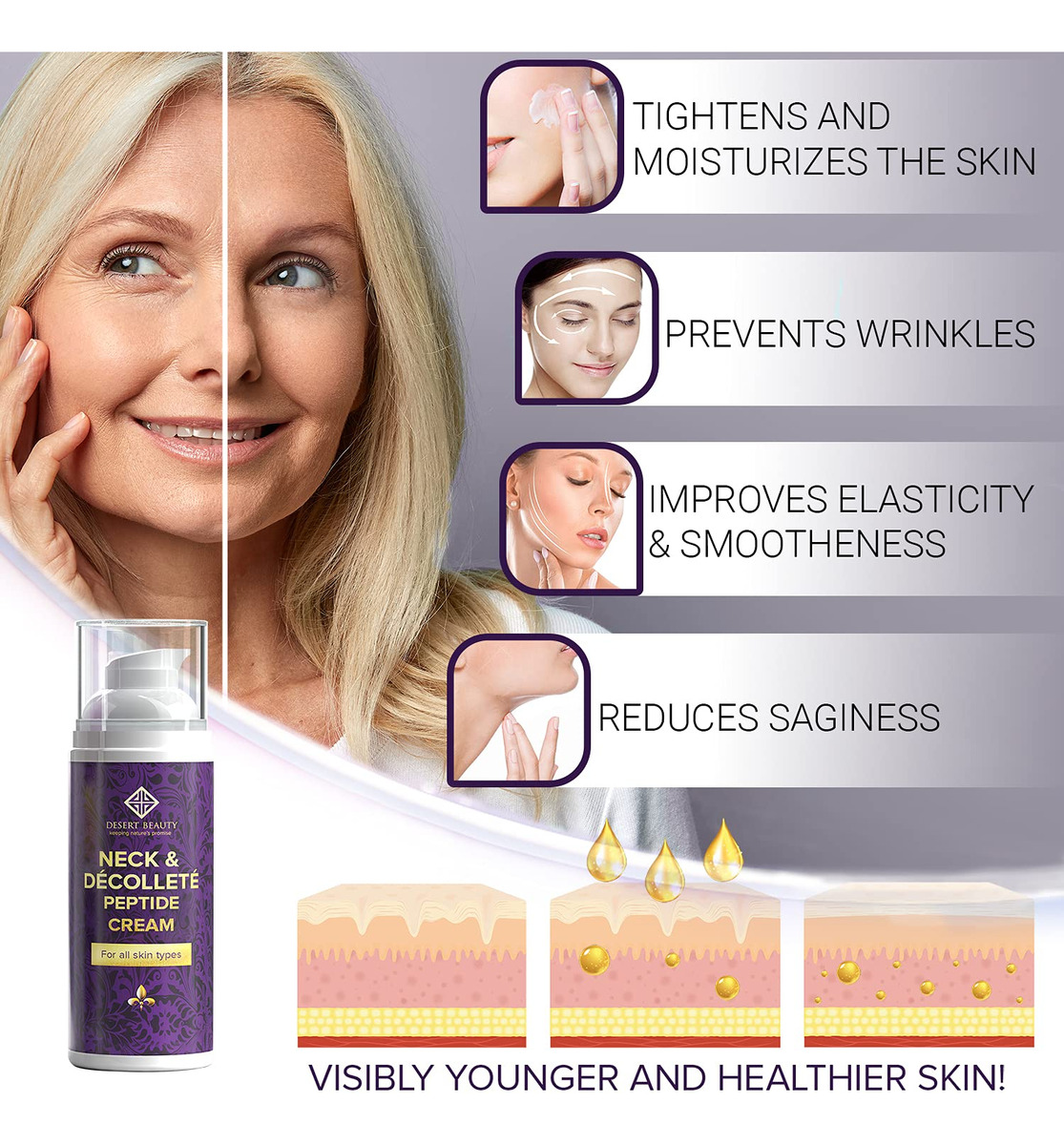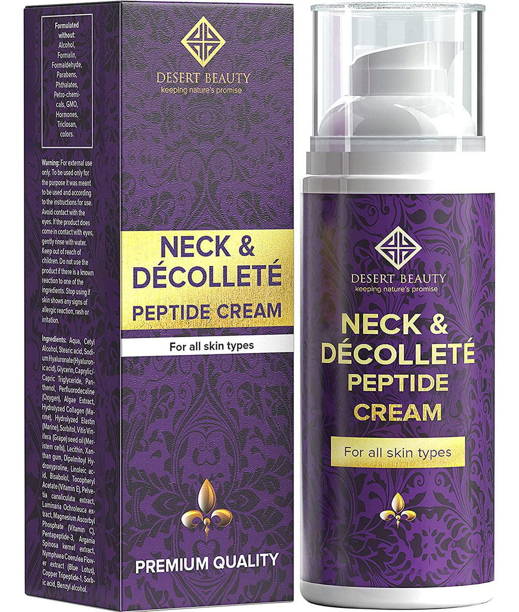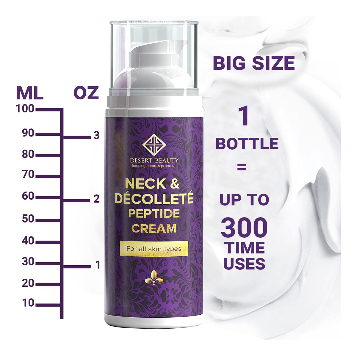 Quer um pescoço e decote mais firmes e lisos? Enriquecido com células-tronco e elastina, este complexo avançado foi projetado para levantar, apertar e rejuvenescer a pele para que você possa se deslumbrar com seu vestido decotado ou maiô! A pele flácida de perú no pescoço e no peito faz você se sentir inseguro e pouco atraente? Você anseia pela pele firme, rechonchuda e luminosa que tinha na juventude? Agora, ter a melhor aparência e se sentir jovem não significa gastar uma fortuna em cremes de beleza ou dar o passo drástico da cirurgia estética. O Creme Peptídico Desert Beauty Neck & Dcollet é especialmente formulado para nutrir e restaurar a pele delicada do pescoço e do peito. Infundimos nosso creme com ingredientes extraordinários, como células-tronco, colágeno marinho, elastina marinha e oxigênio, além de estimulantes de beleza testados e comprovados, como ácido hialurônico e vitaminas C e E. Juntos, acredita-se que esses elementos nutrem e hidratam profundamente a pele madura, resultando em firmeza e elasticidade renovadas que contribuem para uma aparência geral mais jovem. ALÉM DISSO, este produto tem um valor incrível. Embora as marcas concorrentes contenham apenas 50 ml, oferecemos 100 ml de nossa poderosa fórmula antienvelhecimento. Duplique o tamanho por menos do dobro do preço! Infundido com células-tronco, colágeno e elastina Contém vitaminas C e E e ácido hialurônico. Frasco especial não oleoso preserva o frescor Sem álcool, parabenos ou ftalatos. Transgênicos e sem crueldade. Use dia ou noite Pode ser usado sob maquiagem Para homens e mulheres Clique em Adicionar ao carrinho para comprar agora!