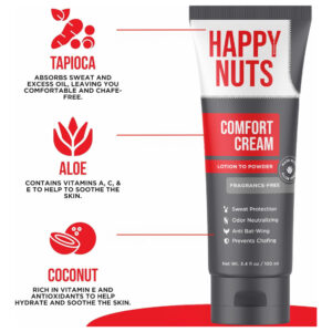 Apresentamos o Happy Nuts Comfort Cream, o melhor desodorante em bolas para homens que oferece proteção antiatrito e contra o suor. Este produto revolucionário foi projetado especificamente para atender às necessidades de higiene masculina, fornecendo uma solução eficaz para o controle de odores. Livre de alumínio, é uma escolha mais saudável em comparação com os antitranspirantes e desodorantes tradicionais. Nosso creme de conforto é uma parte essencial dos produtos de higiene masculina, oferecendo uma sensação de frescor e limpeza durante todo o dia. O Happy Nuts Comfort Cream vai além das capacidades dos desodorantes comuns. Não é apenas um desodorante; é uma solução para partes íntimas e antitranspirante na virilha. Este creme foi desenvolvido para enfrentar os desafios únicos da higiene essencial masculina, proporcionando uma sensação de frescor e conforto ao longo do dia. Diga adeus ao desconforto e olá a um novo nível de frescor com o Happy Nuts Comfort Cream. Experimente a diferença hoje! – PROTEÇÃO EXTRA FORTE – Um creme sem alumínio que oferece proteção duradoura contra odores e suor, mantendo você se sentindo fresco e confiante com conforto incomparável entre as pernas durante todo o dia para acompanhar qualquer estilo de vida ativo. – TECNOLOGIA DE LOÇÃO EM PÓ – O creme confortável se aplica como uma loção e seca como um pó para absorver o suor e criar uma camada antifricção, mantendo o cheiro de ter acabado de sair do banho, mesmo que você não tenha. – INGREDIENTES LIMPOS – Nosso desodorante é feito com ingredientes limpos para ajudar a manter sua privacidade peças seguras e saudáveis. Usamos aroma de coco, aloe, tapioca e sândalo para nutrir e proteger sua pele, oferecendo máxima proteção contra odores. É formulado com babosa para aliviar a área de qualquer irritação, coceira ou irritação. – FÓRMULA SUAVE – Formulada até mesmo para a pele mais sensível e fácil de aplicar. Sua tecnologia de loção em pó leve e não oleosa, sem odores ou fragrâncias fortes, oferece proteção durante todo o dia sem irritação ou desconforto. – SEM INGREDIENTES NOCIVOS – Livre de parabenos, ftalatos, talco, alumínio, sulfatos, formaldeído, silicones ou corantes sintéticos. Todos os nossos produtos são livres de crueldade, veganos, sem glúten e testados por dermatologistas.