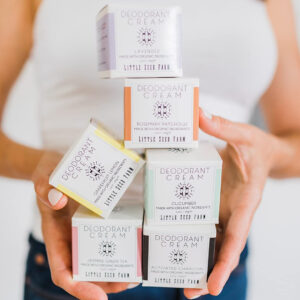 Observação: este produto é preenchido com precisão até 2,4 onças de peso, o que deixa aproximadamente meia polegada de “espaço vazio” na parte superior do frasco durante o enchimento. Esse espaço na cabeça pode se deslocar para o meio ou para o lado do frasco conforme o creme se desloca durante o transporte. Isso ocorre com frequência durante os meses de verão, quando o produto derrete mais facilmente durante o transporte, e entendemos que uma bolsa de ar parece alarmante! Se o creme estiver mais macio do que você prefere, fique à vontade para mexê-lo rapidamente e colocar na geladeira por 10 a 20 minutos (ou mais) até obter a consistência de sua preferência! O derretimento/congelamento não afetará a eficácia deste produto. – SEM ALUMÍNIO E BICARBONATO DE SÓDIO: Nosso creme desodorante natural de toranja e limão é um desodorante sem bicarbonato de sódio e alumínio para mulheres e homens e é um desodorante natural ideal para peles sensíveis. – FÓRMULA DE 24 HORAS: Elimine o odor das axilas por 24 horas ou mais. Nossa mistura de óleos essenciais de desodorantes orgânicos mantém você fresco o dia todo. – NATURAL E ORGÂNICO: Nosso desodorante orgânico certificado como livre de crueldade e sem transgênicos é formulado com ingredientes 100% naturais e toranja e limão sem glúten, parabenos ou fragrâncias sintéticas. – FÁCIL DE APLICAR: Nossa pasta desodorante natural tem uma textura suave e sedosa. Cada frasco de desodorante Little Seed Farm vem com uma colher de madeira gratuita e você pode aplicar com o dedo ou com um de nossos aplicadores de bambu (vendidos separadamente). – NOSSA FAZENDA PARA SUA CASA: desodorantes, sabonetes e produtos para a pele que são bons para o corpo e para a terra. Nossos desodorantes totalmente naturais são feitos à mão em nossa fazenda familiar sustentável no Líbano, Tennessee.