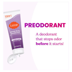 PRIMEIRO DESODORANTE DE CORPO INTEIRO DO MUNDO Sem fragrâncias ou óleos essenciais para quem prefere não adicionar aromas. O tubo de desodorante Invisible Cream, ideal para viagens, da Lume, permite que você controle facilmente a quantidade que usa. Use as pontas dos dedos para passar o creme dispensado em poços, recipientes ou em qualquer outro lugar onde você tenha odor, mas gostaria de não ter. Nossa fórmula à base de água não mancha suas roupas e não deixa resíduos. Usando a quantidade recomendada do tamanho de uma ervilha, o tubo oferecerá 150 aplicações nas axilas (duas axilas) ou 300 em qualquer outro lugar. Um pouco vale muito. – Cheire melhor em qualquer lugar – Controle o odor de coxas, partes íntimas e muito mais, como pés, seios, umbigos, dobras abdominais, rachaduras nas nádegas, rugas nas coxas ou em qualquer outro lugar onde você tenha odor, mas gostaria de não ter. – Extremamente eficaz – Está clinicamente comprovado que o lúmen bloqueia o odor corporal o dia todo e continua controlando o odor por 72 horas. – ALIMENTADO PELA CIÊNCIA – Nossa fórmula é pH otimizado para bloquear o odor antes que ele comece. Você pode até mesmo nos chamar de Preodorant! Certos desodorantes tradicionais simplesmente mascaram ou neutralizam o odor após sua formação. – UNIFORMIZA VISUALMENTE O TOM DA PELE – Está clinicamente comprovado que esfolia e reduz a aparência de hiperpigmentação. Hipoalergênico, sem bicarbonato de sódio e que adora a pele até mesmo de nossas partes mais sensíveis. – LAVANDA SÁLVIA – O perfume exclusivo original de Lume combina lavanda calmante com um toque de sálvia. É um clássico! Nosso Smooth Solid desliza suavemente em qualquer lugar onde você queira controlar o odor.