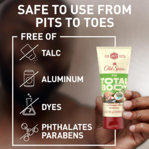 Desodorante de corpo inteiro Old Spice para homens, desodorante corporal total, aroma de Fiji, creme desodorante sem alumínio para frescor 24 horas por dia, 7 dias por semana//Desodorante de corpo inteiro testado por dermatologistas, 3,0 onças – USE EM TODO O CORPO Este é um desodorante corporal completo, suave o suficiente para qualquer lugar. Você pode experimentá-lo nas axilas, nas partes íntimas, no peito, nas pernas, no estômago, na virilha, no pescoço, nos pés, nos braços, nas mãos… – FRESCOR 24 HORAS POR DIA, 7 DIAS POR SEMANA – este desodorante corporal total com fragrância refrescante de baunilha e karité fará você cheirar bem, manterá você fresca e seca o dia todo. (Estudo interno da P&G, agosto e setembro de 2023) – TESTADO POR DERMATOLOGISTAS – Garantimos que nosso Total Body Deo fosse seguro para uso em qualquer lugar. Com zero de alumínio, parabenos, ftalatos e corantes, este produto foi feito para ser suave para a pele e é seguro de usar das covas aos pés e abaixo. (Estudo interno da P&G, agosto e setembro de 2023) – APLICAÇÃO PRECISA – Com o creme corporal total Old Spice, você pode garantir que todos os pontos de difícil acesso estejam sempre frescos, até mesmo suas partes íntimas. Cheirar bem é legal, mas poder cheirar bem por toda parte é ainda mais legal. – À BASE DE ÁGUA – Este creme à base de água é ativado pelo ácido lático que está naturalmente presente na pele. Este creme permanece suave e não empilha quando aplicado na pele.
