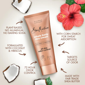 Creme Deo para corpo inteiro SheaMoisture, coco e hibisco, 3 unidades para controle de odor durante todo o dia, sem alumínio, sem alumínio, à base de plantas: formulado sem irritantes como bicarbonato de sódio para proteção intransigente. – Aplicação em todo o corpo: das axilas às coxas e tudo mais, nosso creme desodorante ajuda você a se sentir fortalecido e fresco o dia todo. – Controle de odores durante todo o dia: visa a fonte de odor com controle de odor em 48 horas. — APROVADO PELA BLACK DERM & GYNO: Projetado para uma pele rica em melanina, este desodorante feminino de corpo inteiro tem o selo de aprovação da Dermatologistas e ginecologistas negros. – PERFUME DE COCO E HIBISCO: Delicie-se com esse delicioso frescor tropical que é viciante e celestial. Também é nosso icônico favorito dos fãs do SheaMoisture!