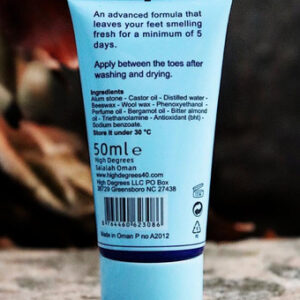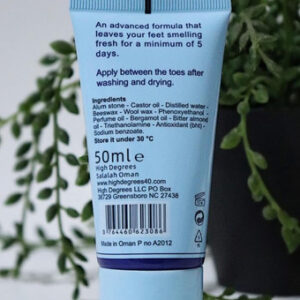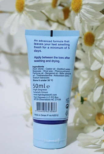 Desodorante para pés – A solução definitiva para um frescor duradouro. Nosso creme inovador vai além dos produtos convencionais para o cuidado dos pés, não apenas reduzindo efetivamente o odor desagradável dos pés por um período de aproximadamente 5 dias ou mais, mas também estabelece um marco que não foi alcançado por nenhuma marca registrada no mercado antes. Nosso segredo está na seleção cuidadosa e combinação de óleos essenciais de alta qualidade, bem como óleos florais e aromáticos provenientes de diferentes partes do mundo. Esta mistura exótica é cuidadosamente montada para criar uma fórmula poderosa e eficaz que não só neutraliza eficazmente o cheiro desagradável, mas também garante um frescor duradouro. Nossa dedicação e esforços se concentram não apenas em obter um efeito temporário, mas, a longo prazo, em eliminar o cheiro desagradável do suor, muitas vezes causado por fatores naturais, como clima quente e úmido. Entendemos que o odor do pé pode ser não apenas irritante, mas também estressante, e é por isso que desenvolvemos uma fórmula que não apenas trata os sintomas, mas também aborda o problema pela raiz. Experimente uma nova dimensão de cuidados com os pés com nosso desodorante para pés, onde o frescor duradouro se encontra com formulações avançadas. Dê aos seus pés o cuidado que eles merecem e desfrute da confiança que vem com pés frescos e perfumados. Nosso creme é mais do que apenas um produto; é uma revolução no estilo de vida para aqueles que valorizam o frescor e o bem-estar duradouros.