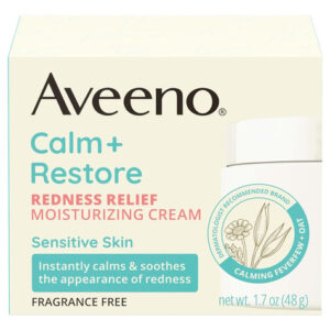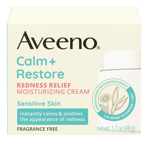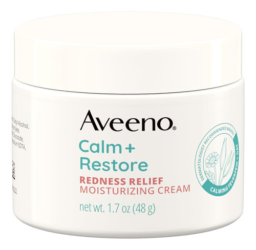Creme facial hidratante: um frasco de 1,7 onças de creme facial diário Aveeno Calm+ Restore Redness Relief, suave o suficiente para o uso diário para acalmar e suavizar instantaneamente a aparência de vermelhidão