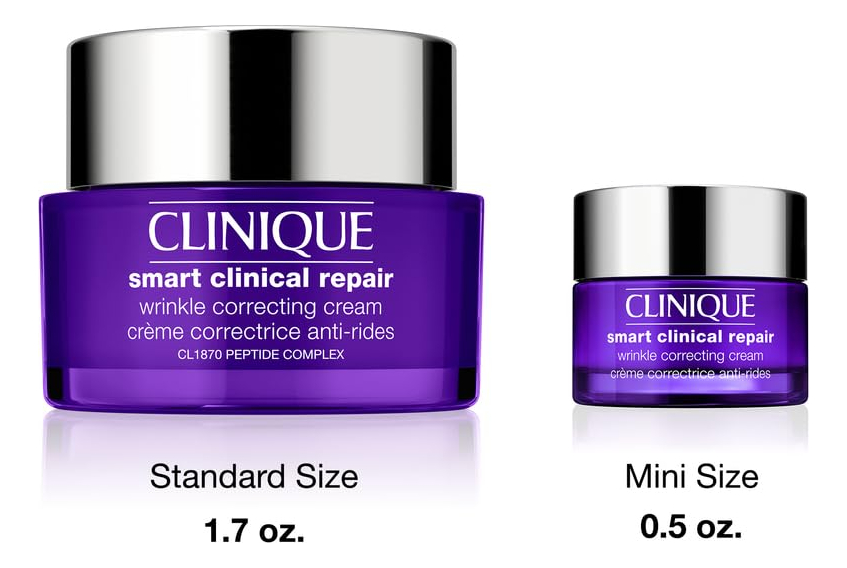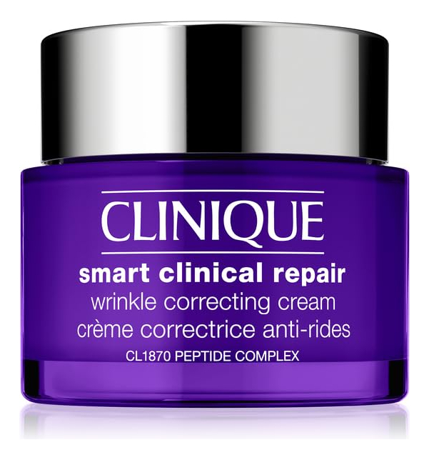 Creme facial corretivo de rugas Clinique Smart Clinical Repair com ácido hialurônico e peptídeos | Antienvelhecimento + hidratante, 2,5 fl oz – Complexo de peptídeos CL187: uma mistura especializada de peptídeos projetada para combater a aparência das rugas, aumentando o colágeno natural, que ajuda a fortalecer a estrutura de suporte natural da pele. Ácido hialurônico: Nossa fórmula usa dois pesos moleculares de ácido hialurônico. Este umectante intenso ajuda a inundar a pele com hidratação e mantém-se firme. Extrato de semente de soja: um ingrediente rico em ácido lisofosfatídico (LPA), que nutre para ajudar a fortalecer a pele. – * Comprovado clinicamente. * Testado dermatologicamente. * Testado contra alergias. – HIDRATANTE FACIAL COM PEPTÍDEOS + ÁCIDO HIALURÔNICO: Nosso creme anti-rugas é formulado com peptídeos para ajudar a aumentar a força da pele para uma aparência mais suave, ácido hialurônico para hidratar e extrato de semente de soja, um ingrediente rico em ácido lisofosfatídico (LPA), que nutre para ajudar a fortalecer a pele. – EXPERIÊNCIA CLÍNICA: Testado contra alergias. 100% livre de fragrâncias. Testado dermatologicamente. Seguro para peles sensíveis. — BASEADO NA CIÊNCIA DERMATOLÓGICA: Como uma marca guiada por dermatologistas, o compromisso da Clinique com a segurança começa com a ciência dos cuidados com a pele. Fazemos parcerias com as melhores mentes em dermatologia e formulamos para todos os tipos, tons e preocupações de pele a serviço de todas as peles.