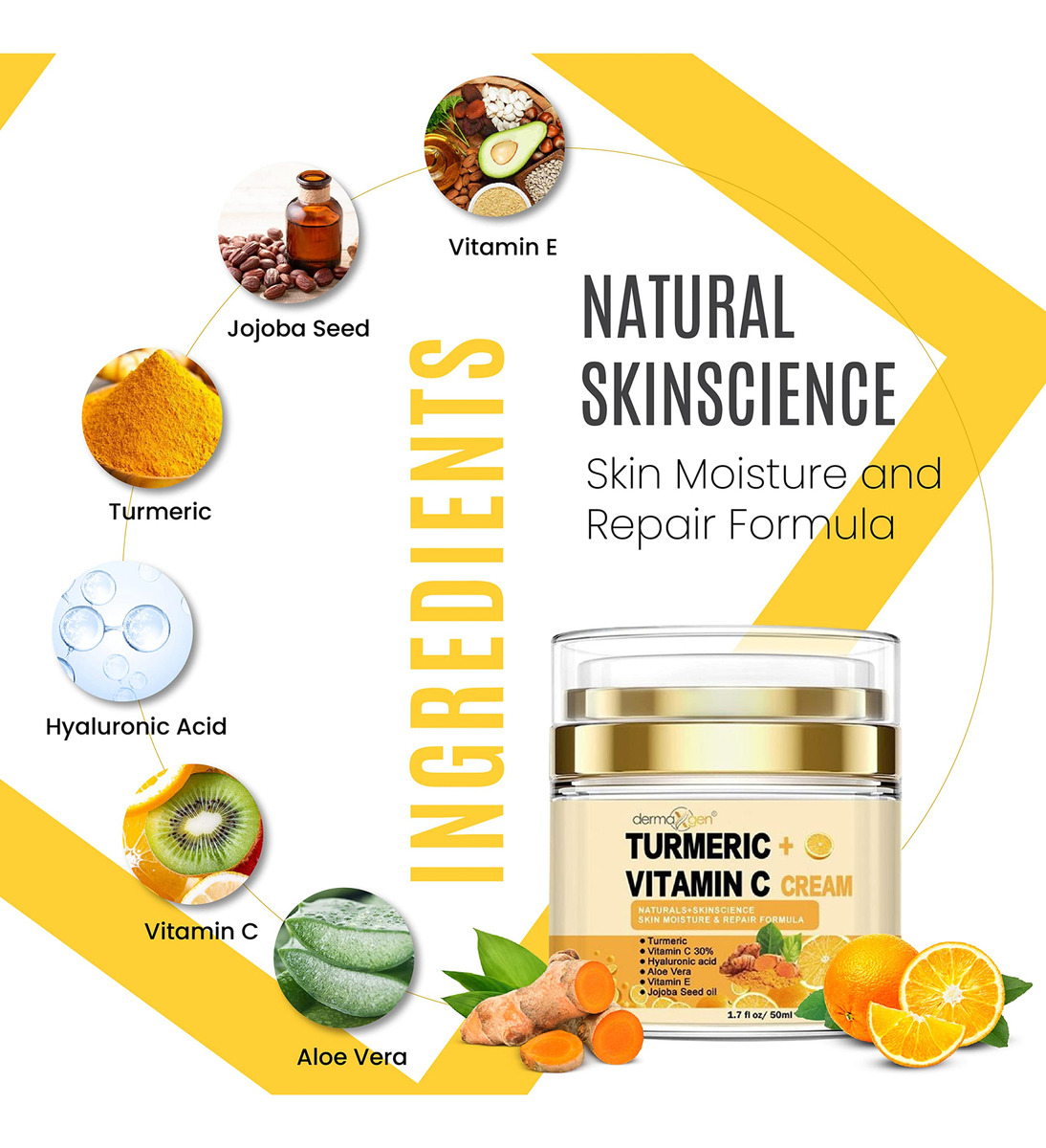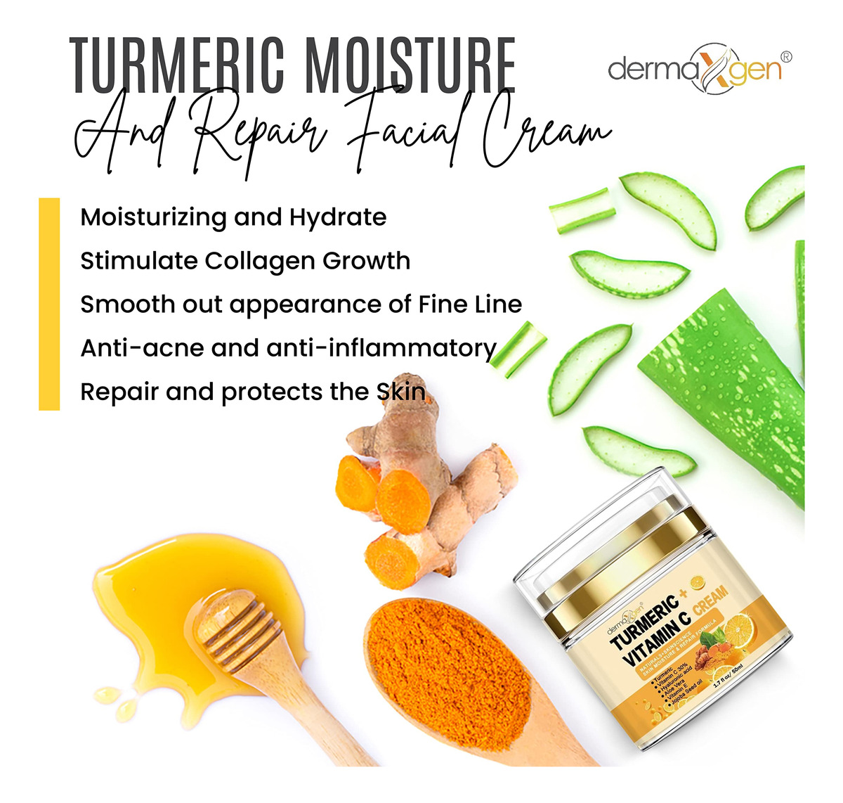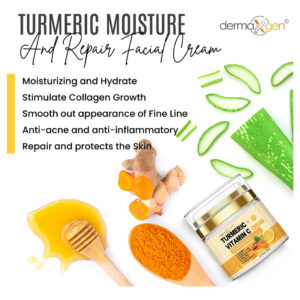 Experimente a sinergia da cúrcuma e da vitamina C para uma pele que irradia juventude e luminosidade. O hidratante facial Dermaxgen possui uma fusão distinta de ingredientes, incluindo açafrão e vitamina C, combinados com a riqueza de ácido hialurônico, vitamina E e elementos orgânicos. Essa mistura potente funciona em harmonia para nutrir, proteger e rejuvenescer sua pele, restaurando seu brilho inato. Enriquecido com antioxidantes robustos e propriedades hidratantes profundas, este creme hidratante para o rosto reabastece a barreira da pele ao mesmo tempo que fornece hidratação duradoura. Aproveitando sua composição exclusiva inspirada na natureza, nosso hidratante facial antienvelhecimento também ajuda a aumentar a elasticidade e a firmeza, minimizando linhas finas e rugas e refinando a textura e o tom da pele.