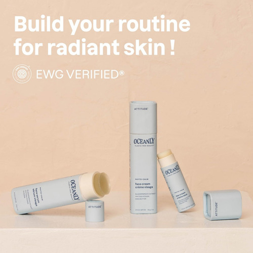 Stick facial ATTITUDE Oceanly, verificado pelo EWG, sem plástico, com ingredientes vegetais e minerais, produto de beleza vegano e livre de crueldade, PHYTO-CALM, sem fragrância, 28 ml. O