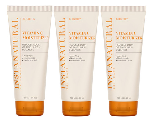 Creme facial hidratante com vitamina C InstaNatural, reduz a aparência de linhas finas e rugas, loção hidratante para pele seca com aloe vera, niacinamida e ácido hialurônico – 100 ml (pacote de 3)
