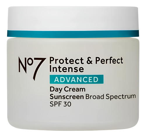 Creme facial hidratante avançado No7 Protect & Perfect Intense – Hidratante facial com SPF – Formulado com ácido hialurônico e tecnologia de peptídeos de colágeno para ajudar a reduzir linhas finas e rugas (50g)