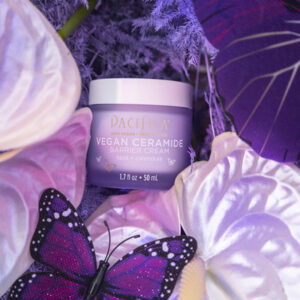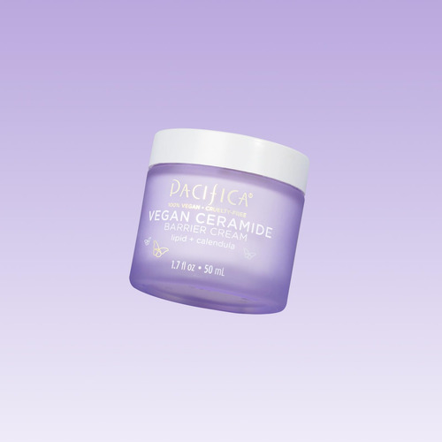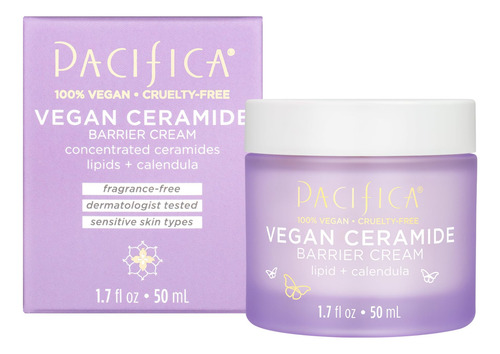 Creme protetor de ceramida vegana Pacifica Beauty, cuidados com a pele, niacinamida, manteiga de karité, hidratante facial diário, sem fragrância, para pele sensível, todos os tipos de pele, vegano, 1,7 fl oz (1 unidade) FORMULADO PARA PELES SENSÍVEIS, este creme facial hidratante dermatologicamente testado e sem fragrância é incrível para peles sensíveis RESTAURA A BARREIRA DA PELE Formulado com ceramidas veganas e aminoácidos e manteiga de karité, esse creme para a pele que derrete hidrata e ajuda a restaurar a barreira protetora da pele. O complexo de aminoácidos, niacinamida e calêndula, unem forças para equilibrar e acalmar. – CERAMIDAS VEGANAS Nossa mistura vegana é um concentrado lipídico vegetal que a pele reconhece e usa para ajudar a restaurar a função de barreira protetora da pele – SEM PRODUTOS QUÍMICOS AGRESSIVOS Formulado sem parabenos, ftalatos, SLS ou óleo mineral. – MELHOR EMBALAGEM: este lindo frasco é feito de vidro. Recicle e dê outra vida a ela!