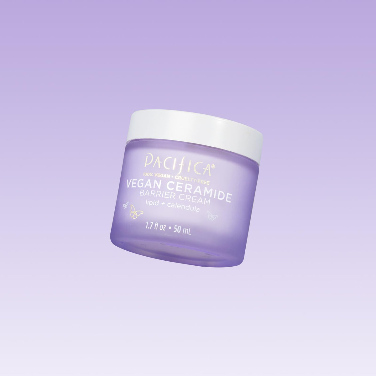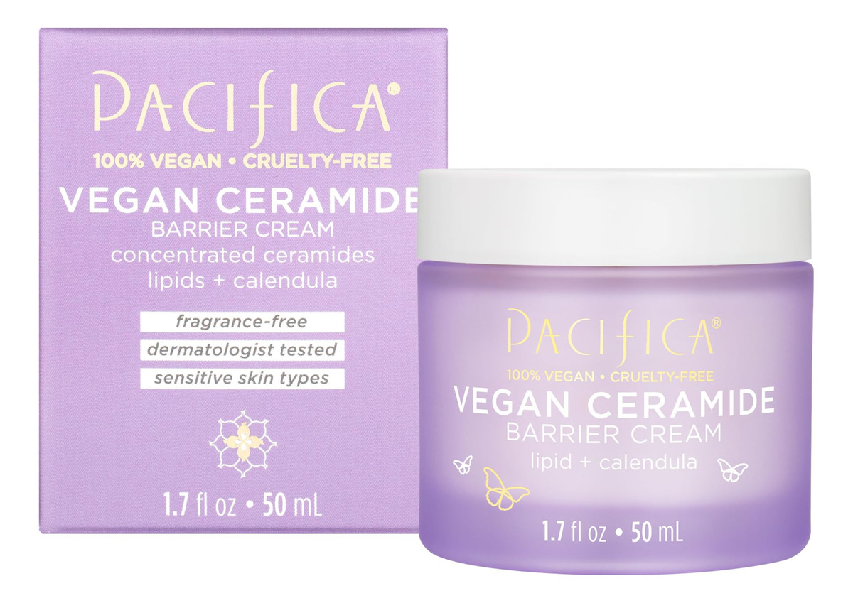 Creme de barreira de ceramida vegano Pacifica Beauty, cuidados com a pele, niacinamida, manteiga de karité, hidratante facial diário, sem fragrância, pele sensível, para todos os tipos de pele, vegano, 1,7 fl oz (1 unidade) — FORMULADO PARA PELES SENSÍVEIS, este creme facial hidratante, testado por dermatologistas e sem fragrância é incrível para peles sensíveis — RESTAURE SUA BARREIRA CUTÂNEA formulado com ceran vegano amidas, aminoácidos e manteiga de karité, este creme derretido hidrata e ajuda a restaurar a barreira protetora da pele. Complexo de aminoácidos, niacinamida e calêndula unem forças para equilibrar e acalmar. – CERAMIDAS VEGANAS, nossa mistura vegana, é um concentrado lipídico vegetal que sua pele reconhece e usa para ajudar a restaurar a função de barreira protetora da pele – LIVRE DE PRODUTOS QUÍMICOS AGRESSIVOS Formulado sem parabenos, ftalatos, SLS ou óleo mineral. – MELHOR EMBALAGEM, este lindo frasco é feito com vidro. Recicle e dê outra vida a ela!