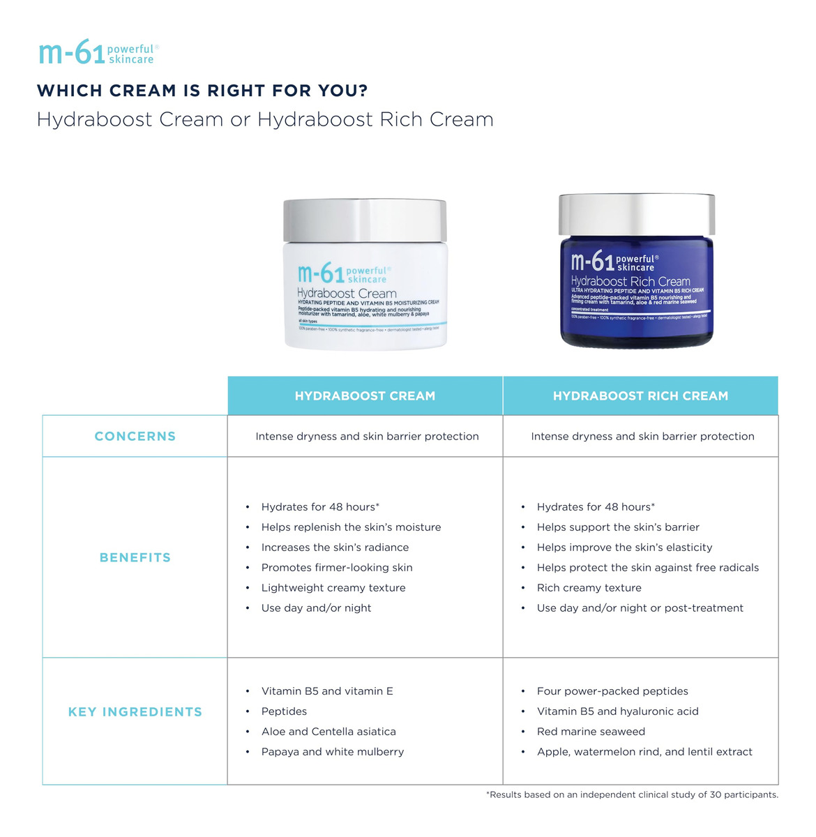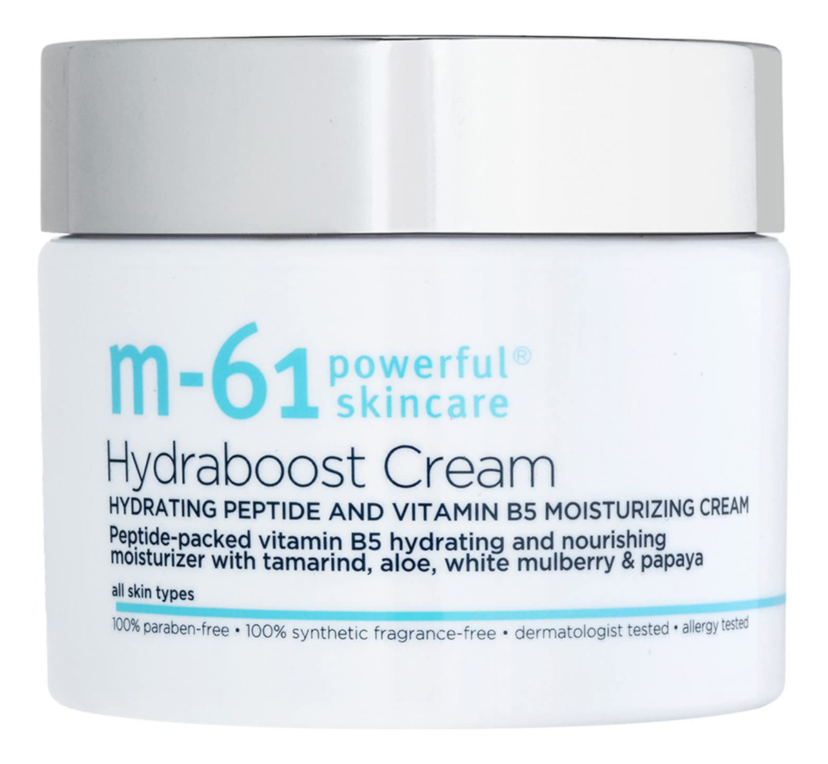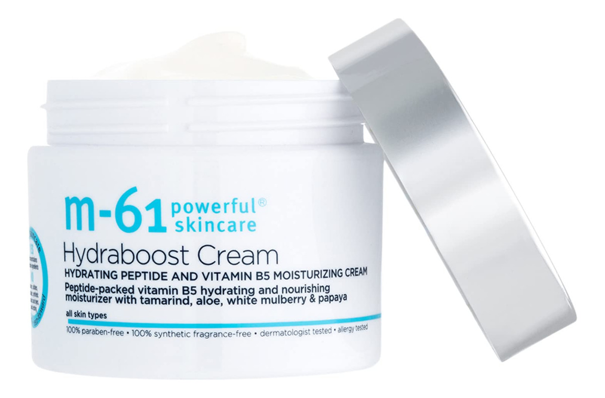 m-61 Hydraboost Cream – Creme facial ultra-hidratante e nutritivo com peptídeos, vitamina B5 e tamarindo – Creme hidratante e nutritivo. Ajuda a curar e suavizar a pele ao mesmo tempo que reduz a aparência das linhas finas. Nutre a pele e ajuda a melhorar a elasticidade. – Reabastece os níveis de hidratação da pele. Ilumina a tez. Bom para pele seca e para usar sobre um sérum ativo ou peeling agressivo. – Sem glúten, vegano, sem testes em animais. Testado dermatologicamente e alérgico. Sem parabenos e ftalatos. Sem fragrância sintética, sem sulfato, sem corantes sintéticos. – Vitamina B5, vitamina E e ácido hialurônico: hidrate e atue para aumentar e repor o nível de umidade da pele. Peptídeos altamente concentrados e cheios de energia: ajudam a promover a firmeza e reduzir a aparência de linhas finas. – Tamarindo: ajuda a melhorar a elasticidade, nutre e hidrata. Aloe e Centella Asiatica: acalmam a pele. Mamão e amora branca: ajudam a iluminar e aumentar o brilho da pele.