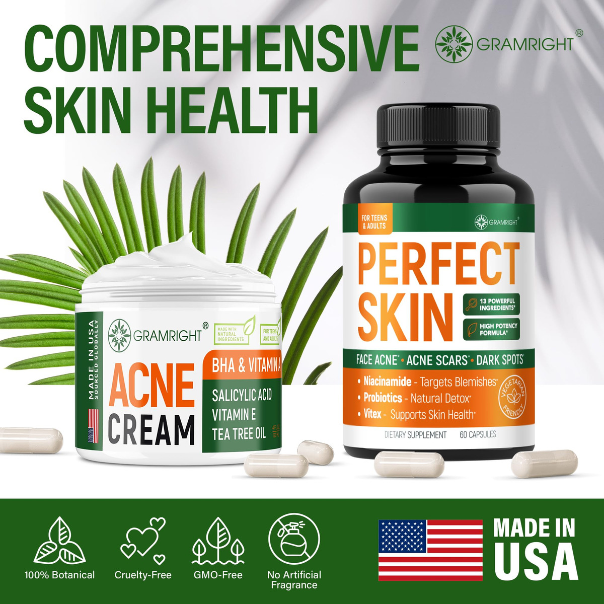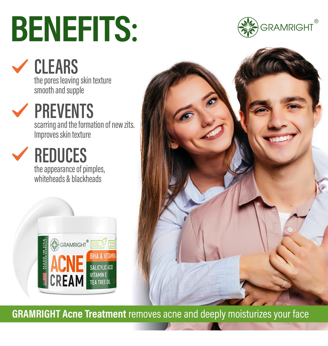 Apresentamos nosso Creme de Apoio à Acne, elaborado com ingredientes naturais e cuidadosamente selecionados para aprimorar sua rotina de cuidados com a pele. Nossa fórmula foi projetada para ajudar a controlar a aparência de espinhas, manchas de acne e cicatrizes, ao mesmo tempo em que fornece hidratação essencial e alívio calmante. Enriquecido com óleo de melaleuca e vitamina E, este creme apoia a saúde geral da pele e melhora sua tez. Características: Produto 100% americano de alta qualidade, formulado com ingredientes naturais cuidadosamente escolhidos. Fácil de usar como parte de sua rotina diária de cuidados com a pele Promove a aparência de uma pele mais clara com o uso regular. Livre de transgênicos, cores artificiais e fragrâncias. Nota: Este creme tem como objetivo apoiar seu regime de cuidados com a pele e promover uma pele com aparência mais saudável, não para diagnosticar, tratar ou curar qualquer condição médica. – Hidratante para acne facial – Lutando com a aparência de acne e cicatrizes? Nosso creme especialmente formulado serve como hidratante facial e auxiliar de cuidados com a pele, proporcionando uma tez mais clara. Este hidratante para pele oleosa ajuda a reduzir a aparência de manchas e cicatrizes de acne, mantendo a pele fresca e hidratada. Ele ajuda a minimizar a aparência das cicatrizes existentes e ajuda a evitar a possibilidade de futuras erupções cutâneas. – Cuidados com a pele para acne – Este hidratante para a pele inclui ácido salicílico, que ajuda a esfoliar a pele e atua como um minimizador de poros, tornando-o um produto ideal para o cuidado da pele facial. As vitaminas A e E trabalham juntas para nutrir e proteger a pele, enquanto o chá verde fornece propriedades antioxidantes que acalmam e acalmam a irritação. Nosso creme facial ajuda a reduzir a aparência de manchas e cicatrizes, tornando-o uma ótima opção para quem busca tratamento de cicatrizes de acne sem ingredientes agressivos. – Creme de acne para rosto e corpo – Nosso creme é especialmente formulado para atender às necessidades da pele propensa a acne do rosto e do corpo. Ideal para uso em várias áreas, incluindo acne nas costas, acne nas nádegas e acne no peito, este creme ajuda a minimizar a aparência dos poros e oferece uma aparência equilibrada e sem acne. Embora apoie o tratamento da acne no peito, ele foi desenvolvido para aprimorar sua rotina de cuidados com a pele e ajudar a obter uma pele clara da cabeça aos pés. – Suporte para o tratamento da acne – Este creme é um excelente complemento para qualquer regime de tratamento da acne para adolescentes e adultos. Ele atua como um hidratante facial hidratante e um hidratante de suporte para peles com tendência a acne, aprimorando sua rotina junto com o limpador de ácido salicílico e outros limpadores de acne. Ideal para tratar os pontos da acne e como tratamento local para o rosto, ajuda a controlar a acne corporal e auxilia no processo geral de obter uma pele mais clara e saudável. – Auxiliar de cuidados com a acne – Este creme versátil é um excelente complemento à sua rotina de cuidados com a pele com acne, ajudando a controlar imperfeições como espinhas, cicatrizes de acne e manchas. Atuando como um creme para espinhas e um hidratante facial hidratante, ele auxilia na aparência de cicatrizes de acne e oferece benefícios na redução dos poros. Sua fórmula de suporte ajuda a melhorar sua aparência geral, tornando-a uma aliada valiosa em sua jornada para uma pele mais saudável e equilibrada.