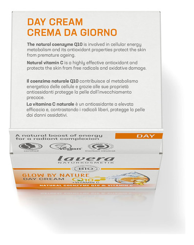 Creme facial Lavera Glow by Nature – Creme facial com Q10 e vitamina C para uma tez radiante – Creme hidratante para o rosto – Creme antienvelhecimento – Certificado pela PETA – Vegano – Fabricado na Alemanha – 50 ml