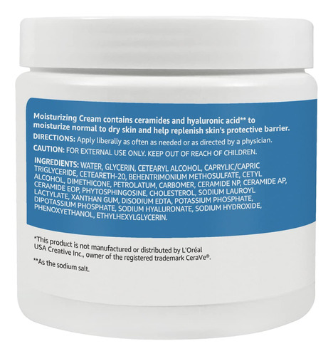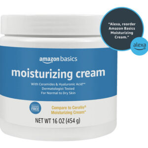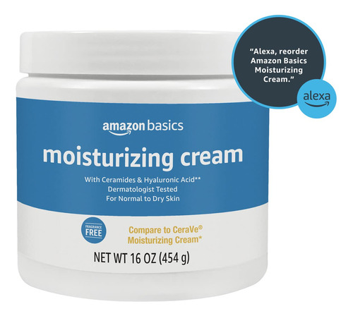 Creme hidratante Amazon Basics para rosto e pele seca, hidratante, 16 onças, pacote com 1 — HIDRATAÇÃO: formulado com ceramidas, nosso creme hidratante corporal ajuda a repor a barreira protetora da pele, melhorando a hidratação — FÓRMULA SEM FRAGRÂNCIA: formulado sem fragrância, este creme hidratante para pele seca sem perfume contém ceramidas e ácido hialurônico — TESTADO POR DERMATOLOGISTAS: Nosso hidratante corporal e facial O produto foi testado dermatologicamente, adequado para peles normais a secas – HIDRATAÇÃO ESSENCIAL: Ingredientes essenciais, como o ácido hialurônico, fornecem substâncias essenciais hidratação como hidratante facial para pele seca — MULTIUSO: perfeito para aplicação diária como loção facial e cuidados com o corpo; aplique generosamente sempre que necessário ou conforme indicado por um profissional de saúde