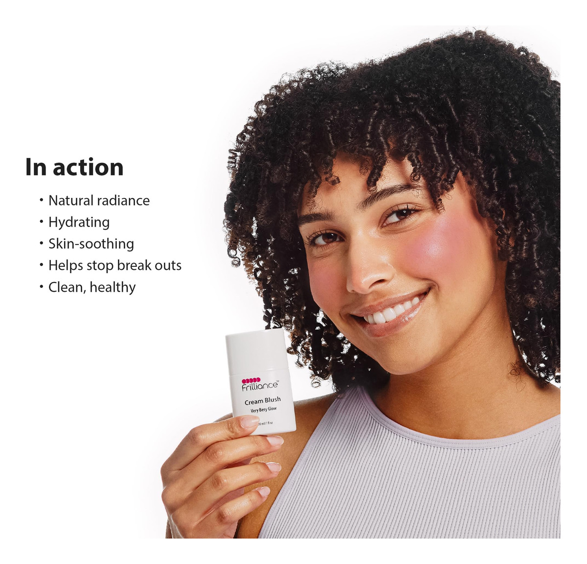 FRILLIANCE CREAM BLUSH VERY BERRY GLOW Um lindo toque de cor que não agride a pele e é formulado especificamente para peles propensas a adolescentes — brilhante! COMO SE INSCREVER: Resplandeça com uma confiança otimista. Esprema uma quantidade de blush cremoso do tamanho de uma pérola no dorso da mão. Use as pontas dos dedos para pontilhar e alisar pequenas quantidades nas bochechas. Misture suavemente e espalhe as bordas para obter um toque natural de cor. INGREDIENTES PRINCIPAIS: Aloe: Aloe é um ingrediente natural que adora a pele e atravessa muitas culturas. Rica e hidratante, a babosa também tem dois hormônios importantes, auxina e giberelinas. Esses dois hormônios promovem a cura e ajudam a acalmar a inflamação. O aloe vera ajuda a aumentar o teor de água na pele e a deixa hidratada sem torná-la oleosa. Uma grande vitória para a pele propensa a adolescentes! Esqualano: Comumente colhido de fontes vegetais como azeitonas, óleo de gérmen de trigo e farelo de arroz, o esqualano é usado como um emoliente altamente eficaz, hidratante excepcional e antioxidante natural. Toda essa beleza para sua pele propensa à adolescência ajuda a manter a pele macia e saudável. Nome engraçado, ótimos resultados. Ésteres de jojoba: os ésteres de jojoba elevam os benefícios do óleo de jojoba a um novo e excitante nível para peles com tendência a adolescentes. Os ésteres de jojoba são os ácidos graxos e álcoois de jojoba no óleo de jojoba. Os ésteres de jojoba não contêm triglicérides (sem oleosidade extra) e são, estruturalmente, muito próximos ao sebo humano e ao óleo de baleia. Por mais nojento que tudo isso possa parecer, é uma ótima notícia! Os ésteres de jojoba trazem os benefícios de um óleo sem a oleosidade adicional de um óleo. Brilhante! – HIDRATAÇÃO ABSOLUTA: frasco de 30 ml/1 fl oz de creme hidratante Frilliance Blush, Very Berry Glow Tint. Os produtos Frilliance são desenvolvidos para bloquear as erupções cutâneas e, ao mesmo tempo, proporcionar um brilho natural. Experimente nosso blush temperamental e profundo de frutas vermelhas para um toque de cor hidratante e agradável à pele com um toque de glamour. Ele deixa uma tonalidade linda em suas bochechas durante esses longos dias! – FIQUE BRILHANTE: coloque uma quantidade de blush creme do tamanho de uma pérola no dorso da mão. Use as pontas dos dedos para pontilhar e alisar pequenas quantidades nas bochechas. Misture suavemente e espalhe as bordas para obter um toque natural de cor. Os pincéis de maquiagem são bem-vindos, mas as pontas dos dedos são mais fáceis de manusear e controlar. – SEM CRUELDADE: Nenhum de nossos produtos é testado em animais! Dessa forma, você pode se sentir linda e ajudar a salvar o meio ambiente também! SEM MATERIAL BRUTO: Sem parabenos, sem ftalatos, sem laurilsulfato de sódio, sem óleo mineral, sem petróleo. Seguro e eficaz está no cerne de quem somos, é por isso que nos concentramos em fontes vegetais – HIPOALERGÊNICAS: Pele sensível? Sem problemas! Todos os nossos produtos são livres de fragrâncias, por isso funcionam muito bem em todos os tipos de pele. Eles também não são comedogênicos, o que significa que não obstruem seus poros! Proteja sua pele para adolescentes com Frilliance! – NÃO OBSTRUEM OS POROS: Todos os produtos da Frilliance não são comedogênicos, o que significa que não obstruem os poros! Proteja sua pele para adolescentes com Frilliance. Testado para adolescentes, aprovado por adolescentes.:)