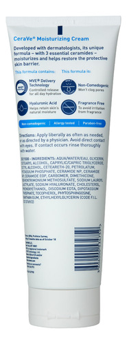 Creme hidratante CeraVe, hidratante facial e corporal, pele normal a seca, 8 oz — [INGREDIENTES QUE RETÊM A UMIDADE] Formulado com ácido hialurônico para ajudar a reter a umidade natural da pele — [HIDRATA SEM ENTUPIR OS POROS] Ideal para pele seca a muito seca — [TECNOLOGIA PATENTEADA] Inclui a tecnologia patenteada MVE Delivery de liberação prolongada para hidratação durante todo o dia – [SUAVE PARA A PELE] Livre de fragrância e óleo, hipoalergênica, não comedogênico e não irritante