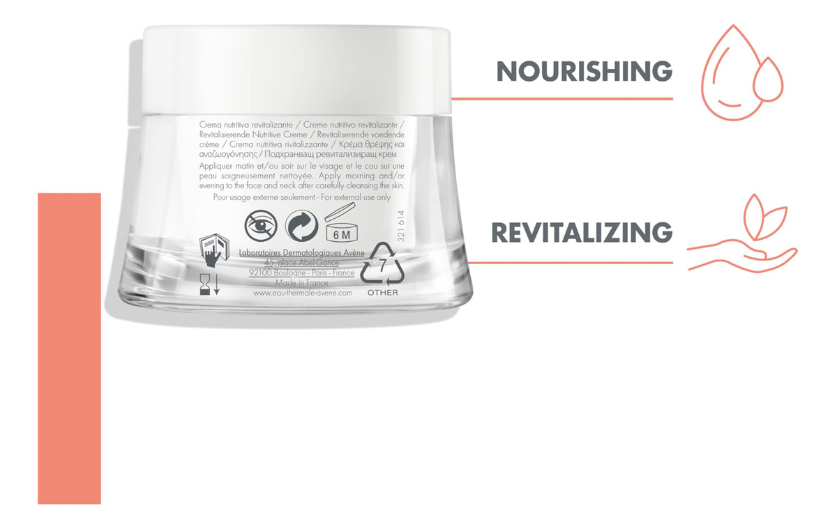 Creme nutritivo revitalizante Eau Thermale Avne, hidratante facial ultra nutritivo, não comedogênico de 1,6 fl. oz. — O creme nutritivo rico e revitalizante repõe os lipídios enquanto evita a perda de umidade na pele seca e restaura uma barreira cutânea saudável. – Os antioxidantes reenergizam a pele e deixam um acabamento macio e brilhante. Complexo rico em vitaminas. Hidrata e nutre. – Use diariamente pela manhã ou à noite. Aplique no rosto e pescoço após limpar a pele.