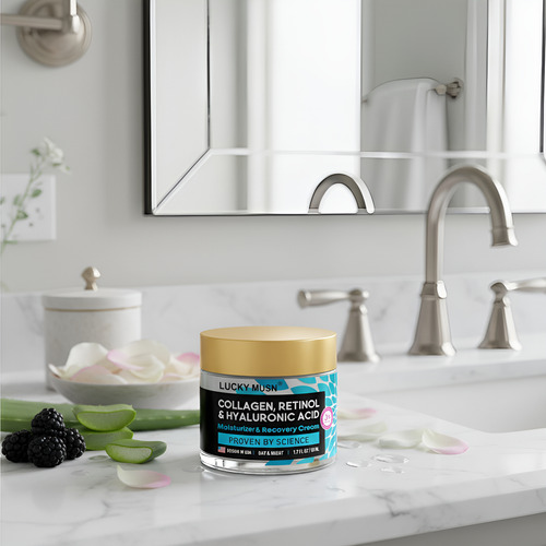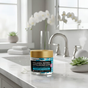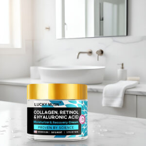 Cuide profundamente da sua pele com o Creme Hidratante Lucky Musn, formulado com uma poderosa combinação de Colágeno, Retinol, Células-Tronco e ingredientes nutritivos como Manteiga de Karité, Niacinamida e Vitamina E. Este creme versátil oferece hidratação intensa e ação firmadora, restaurando a elasticidade e suavidade da pele.