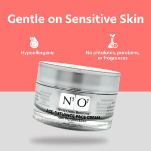 Beauty é um creme facial N1 o1 para pele profunda que aumenta a idade e desafia a idade. É o único cuidado com a pele a utilizar a descoberta da molécula antienvelhecimento óxido nítrico, ganhadora do Prêmio Nobel, para desafiar o envelhecimento da pele, ajudando a tratar a causa da pele enrugada e danificada. O creme facial N1o1 Age-Defiance atua em um nível celular profundo na pele, para descobrir a causa raiz das rugas e melhorar a aparência da pele envelhecida. Adoro a aparência e a sensação da sua pele. O creme facial N1o1 Nitric Oxide Boosting Age-Defiance é um avanço revolucionário no cuidado da pele, especialmente formulado com 3 incríveis ingredientes antienvelhecimento para tratar especificamente a pele problemática. Reduza visivelmente a aparência das rugas com um luxuoso creme facial com plantas. Óxido nítrico – a base de uma pele bonita; fórmula peptídica complexa – blocos de construção e rejuvenescimento; e fator de crescimento epidérmico (EGF) – aumentam o colágeno e a elastina. Use com sérum antienvelhecimento ativador de óxido nítrico N1o1 para máxima produção de óxido nítrico e benefícios antienvelhecimento para o rosto. – Pele firme e jovem – Aproveitando os avanços inovadores do óxido nítrico, nosso hidratante facial que desafia o envelhecimento para pele seca promove hidratação e fornecimento de nutrientes às células da pele, revelando uma pele radiante. – Tez vibrante – Infundido com peptídeos complexos e fator de crescimento epidérmico (EGF)), nosso hidratante facial hidratante ajuda a aumentar a produção de colágeno e elastina, tratando as rugas para uma aparência brilhante. – Fórmula revolucionária – Apresentando Tecnologia de óxido nítrico ganhadora do Prêmio Nobel, nosso creme facial antienvelhecimento funciona em nível celular, aprimorando as moléculas antienvelhecimento do corpo e melhorando a textura da pele. – Adequado para todos os tipos de pele – Ideal para quem tem pele normal, oleosa, seca ou sensível, nosso creme facial antirrugas se integra perfeitamente à sua rotina de cuidados com a pele, oferecendo efeitos de lifting visíveis. – Fácil de usar – Para obter resultados ideais para melhorar a pele, aplique um quantidade do tamanho de uma moeda de dez centavos do nosso creme facial para mulheres e homens duas vezes ao dia, uma vez pela manhã e novamente à noite, para pele limpa e seca.