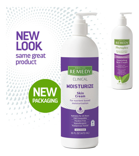 Creme Hidratante Clínico Medline Remedy, sem perfume (frasco de bomba de 16 oz), nutritivo para pele seca, creme hidratante sem parabenos e sulfatos para rosto e corpo, loção para pele sensível — NOVO NOME E APARÊNCIA: CREME HIDRATANTE PARA PELE ANTERIORMENTE PHYTOPLEX. Mesmo ótimo produto, novo nome e novo visual. Remedy é a marca #1 de cuidados com a pele na área da saúde. – HIDRATAÇÃO MÁXIMA: nutra sua pele com emolientes naturais com o creme hidratante Remedy Clinical Skin Cream. Ele contém oleossomos de cártamo e ácidos graxos essenciais que penetram profundamente na pele para uma hidratação máxima. – CREME NUTRITIVO PARA A PELE: O uso diário de nosso creme leve para rosto e corpo pode acalmar a pele seca e desidratada por até 24 horas. Sem perfume, hipoalergênico, sem alérgenos. — Frasco de bomba conveniente: desbloqueie as maravilhas da natureza com cada bomba de nosso creme hidratante corporal diário! Nosso hidratante para a pele vem em um frasco com bomba para uma aplicação fácil e sem bagunça. Sem parabenos e sulfatos. Testado por pediatras. – COMPLEXO RICO EM NUTRIENTES: Experimente os benefícios nutritivos de nossa mistura exclusiva do Remedy Nutrient Complex, uma mistura de origem natural anteriormente conhecida como Phytoplex, projetada para fornecer um regime de hidratação suave para peles sensíveis