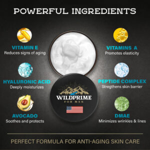 WildPrime é mais do que um simples creme facial. Nossa poderosa fórmula hidratante foi especialmente projetada para manter o rosto masculino hidratado durante todo o dia. Além disso, tem um efeito antienvelhecimento impressionante, reduzindo as rugas e retardando o processo de envelhecimento. Não há necessidade de gastar muito dinheiro em vários tratamentos – o WildPrime fará seu trabalho. Garantido. O hidratante facial antienvelhecimento WildPrime é ótimo para: Aliviar o inchaço matinal Suavizar as rugas Preencher as linhas finas Refrescar a condição da pele Use o WildPrime como hidratante diário e como tratamento pós-barba para obter o efeito mais rápido. Funciona para todos os tipos de pele, da mais macia à mais áspera. ADICIONE AO CARRINHO AGORA para realçar sua beleza natural! – CREME MASCULINO PODEROSO – WildPrime é um hidratante facial perfeito para homens que entendem a importância de um cuidado adequado com a pele e desejam enfatizar sua beleza natural. Você pode usar nosso creme facial como hidratante diário e como tratamento pós-barba. Ele acalma a pele áspera e proporciona um bom efeito suavizante e lifting, reduzindo os sinais de envelhecimento e ajudando você a obter um rosto realmente atraente. – RESULTADO RÁPIDO E VISÍVEL – Temos certeza de que os homens reais valorizam resultados reais, é por isso que combinamos apenas ingredientes comprovados e benéficos para sua pele. A fórmula poderosa com ácido hialurônico e vitaminas A e E ajuda a manter a pele hidratada o dia todo e a reduzir a profundidade das rugas e linhas finas. Não há necessidade de vários tratamentos – WildPrime é tudo o que um homem real precisa para ter uma pele bonita e saudável. – FÓRMULA NATURAL INTELIGENTE – Nosso hidratante facial antienvelhecimento tem uma textura agradável e não oleosa que não obstrui os poros. Ele não contém fragrâncias e cores irritantes e funciona para todos os tipos de pele, então você não precisa se preocupar com pesquisas exaustivas sobre o que exatamente seria eficaz para você. A WildPrime simplesmente cumpre o prometido, e é por isso que homens de todo o país confiam em nós. – QUALIDADE EXCEPCIONAL – Na WildPrime, nos preocupamos com cada frasco de hidratante facial que criamos. É por isso que cada lote é submetido a testes independentes de terceiros para verificar a conformidade com a segurança e a pureza. Fabricamos nosso hidratante antienvelhecimento nos EUA em uma instalação certificada. Ao comprar nosso creme, você pode ter certeza de que está obtendo um produto excepcional de uma qualidade americana perfeita e real. – VOCÊ É IMPORTANTE – Valorizamos sua experiência com nosso hidratante facial para homens mais do que qualquer outra coisa! Por favor, não hesite em compartilhar sua opinião conosco por meio de avaliações ou mensagens. Se precisar de nossa ajuda ou quiser perguntar algo, entre em contato conosco diretamente. Nossa equipe de suporte ficará feliz em ajudá-lo e garantir que você esteja 100% satisfeito e tenha apenas uma impressão positiva do nosso creme.