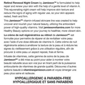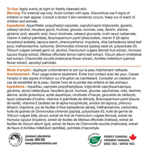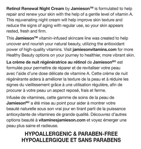Creme noturno renovador de retinol e provitamina A da Jamieson, 120 ml (4,2 fl oz)